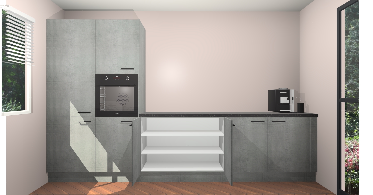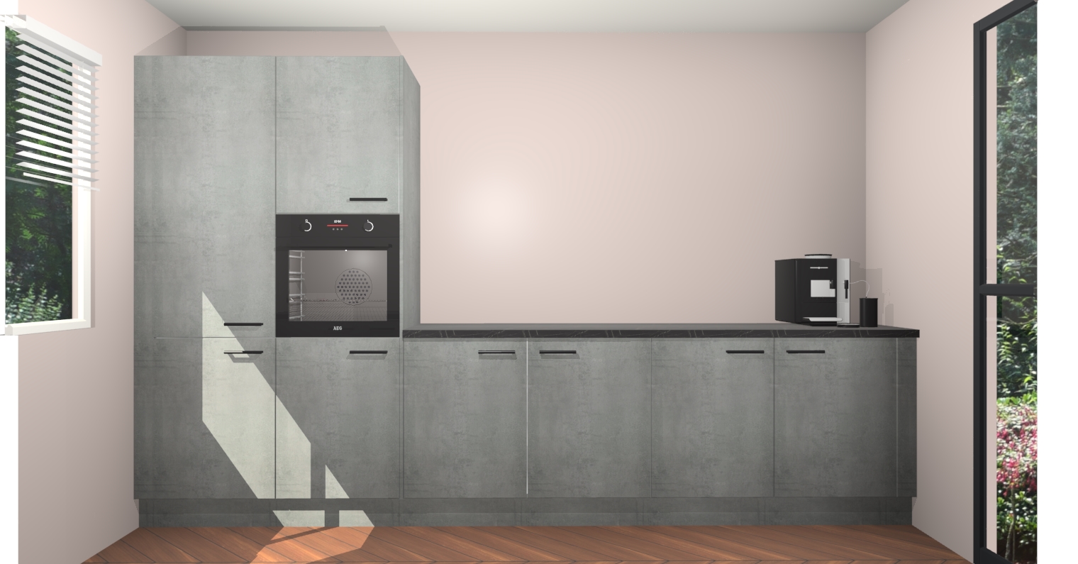 Welkom bij de Beton Parelgrijs keuken Lusaka. Deze prachtige keuken zal de komende jaren het middelpunt van de belangstelling in uw huis zijn. Uitgerust met vijf inbouwapparaten komt u nooit kookgereedschap tekort. Bovendien geeft de warme houtlook elke ruimte een uitnodigende en tijdloze uitstraling.