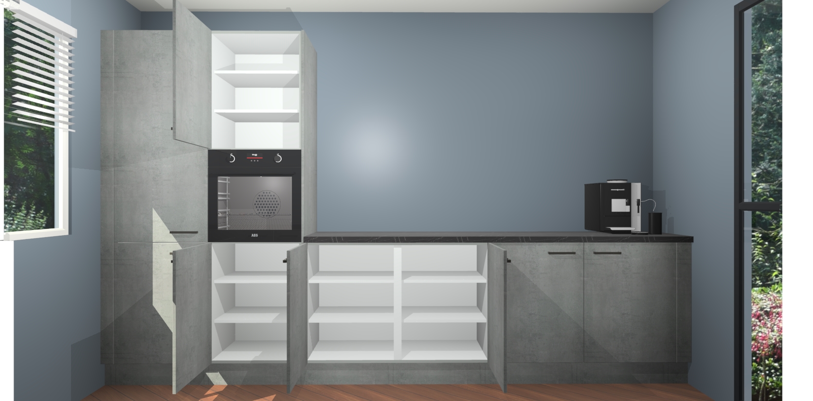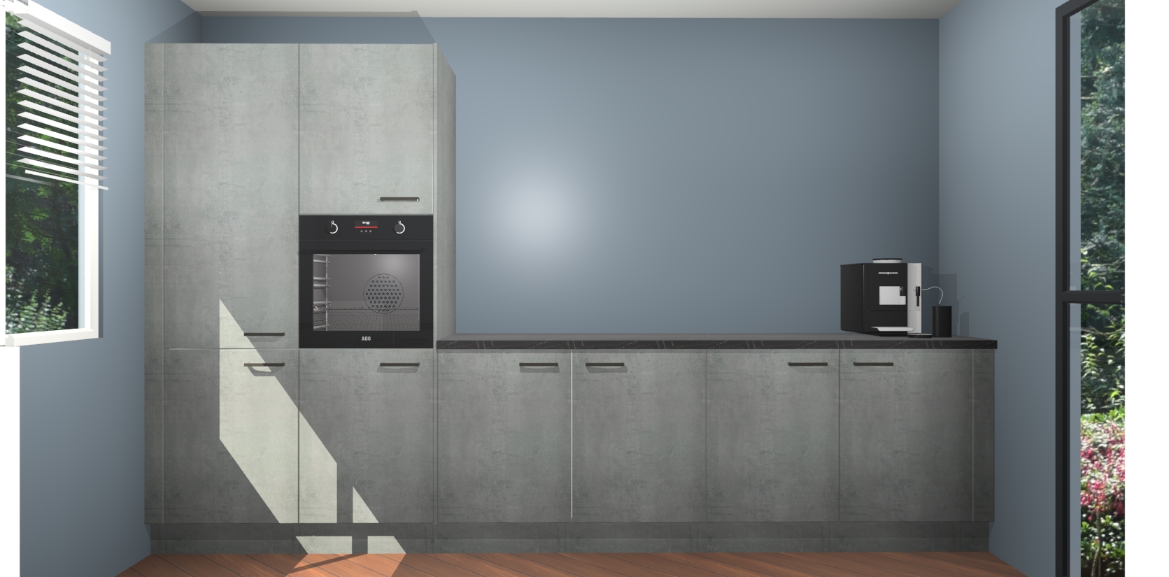 Welkom bij de Beton Parelgrijs keuken Lusaka. Deze prachtige keuken zal de komende jaren het middelpunt van de belangstelling in uw huis zijn. Uitgerust met vijf inbouwapparaten komt u nooit kookgereedschap tekort. Bovendien geeft de warme houtlook elke ruimte een uitnodigende en tijdloze uitstraling.