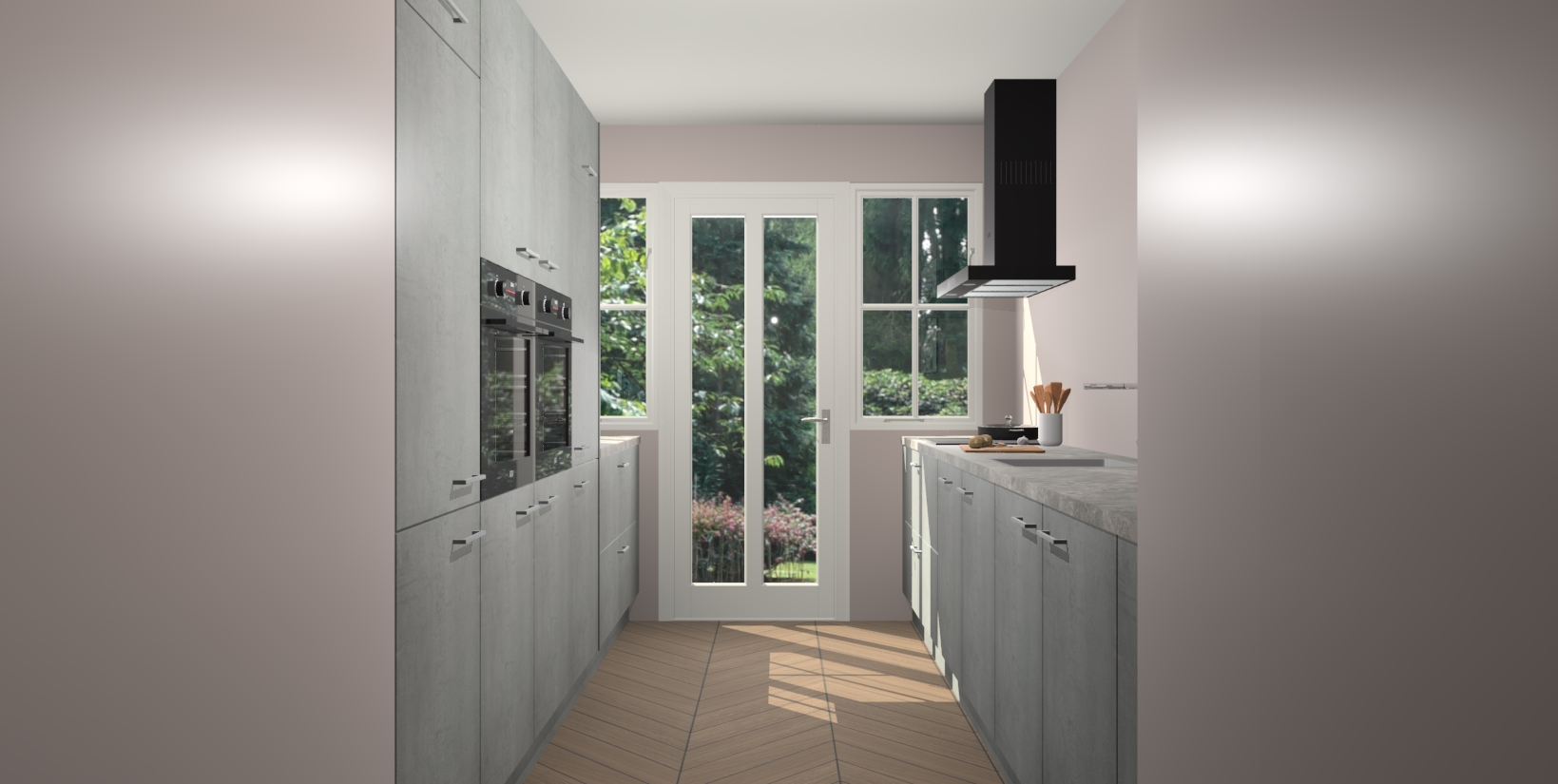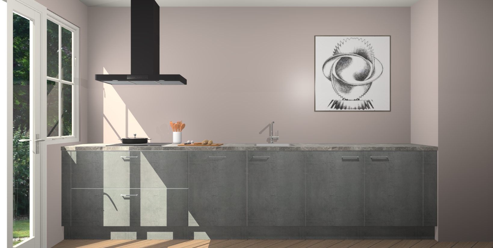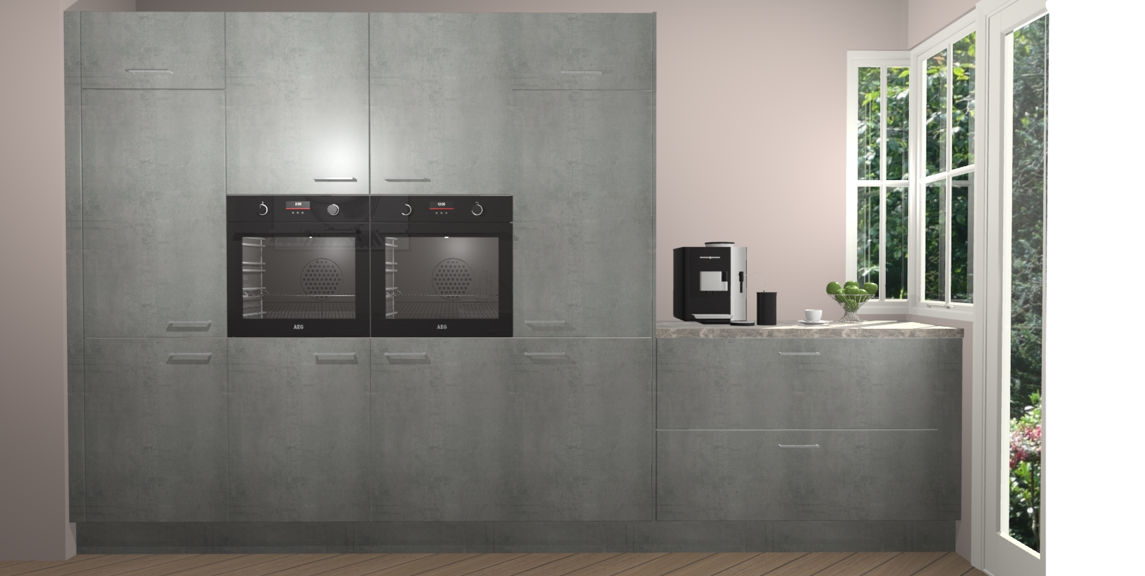 Een stijlvolle en praktische keuken als deze mag gezien worden. Dankzij de prachtige beton parelgrijs matte afwerking wordt de keuken gemakkelijk het middelpunt van uw huis - hij ziet er geweldig uit onder allerlei lichtomstandigheden, van dag tot nacht!