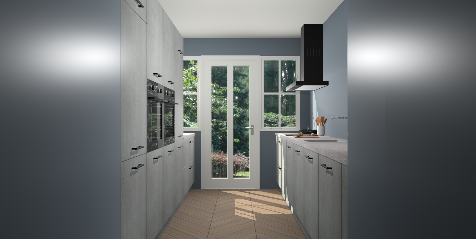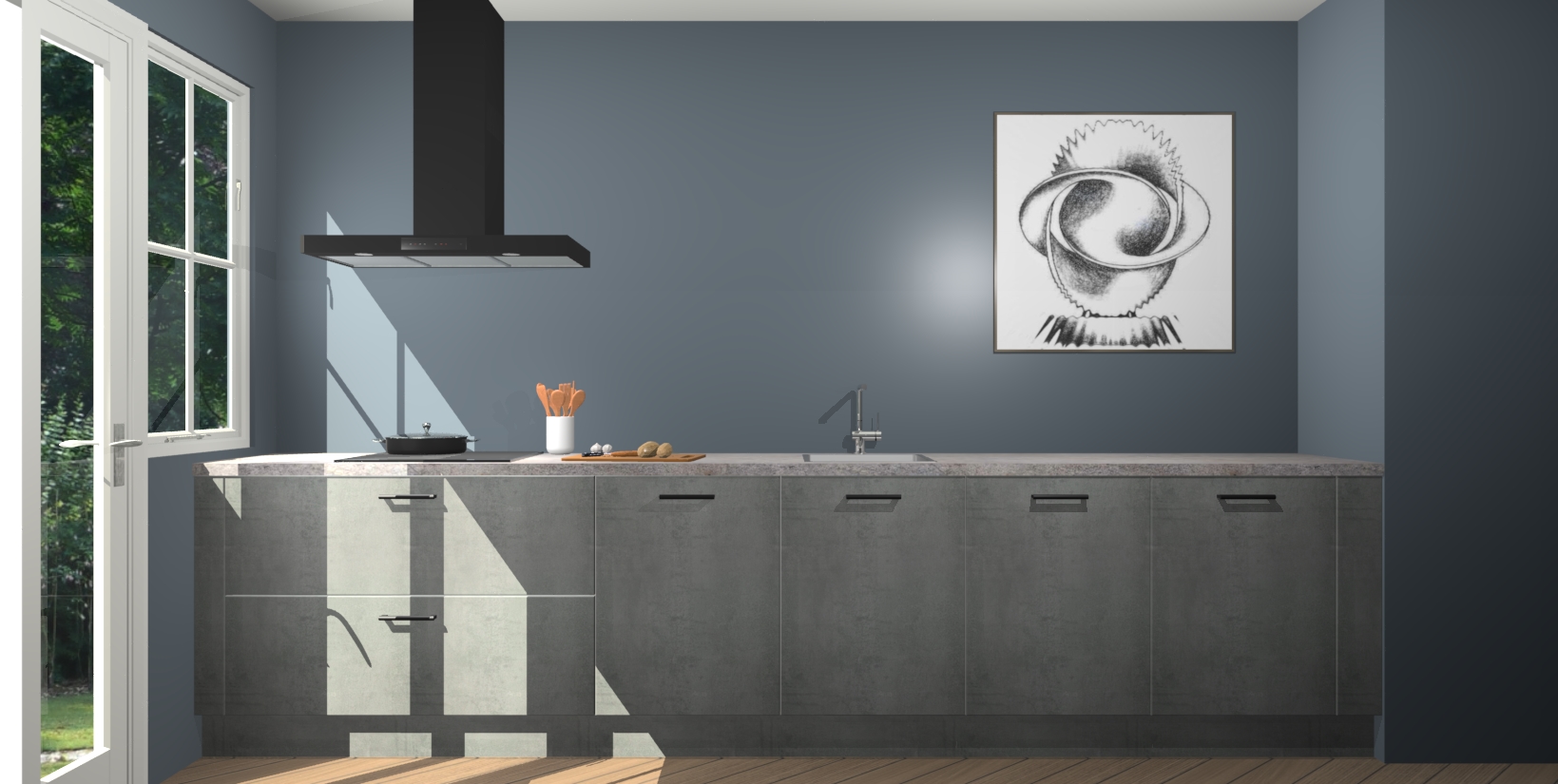 Een stijlvolle en praktische keuken als deze mag gezien worden. Dankzij de prachtige beton parelgrijs matte afwerking wordt de keuken gemakkelijk het middelpunt van uw huis - hij ziet er geweldig uit onder allerlei lichtomstandigheden, van dag tot nacht!