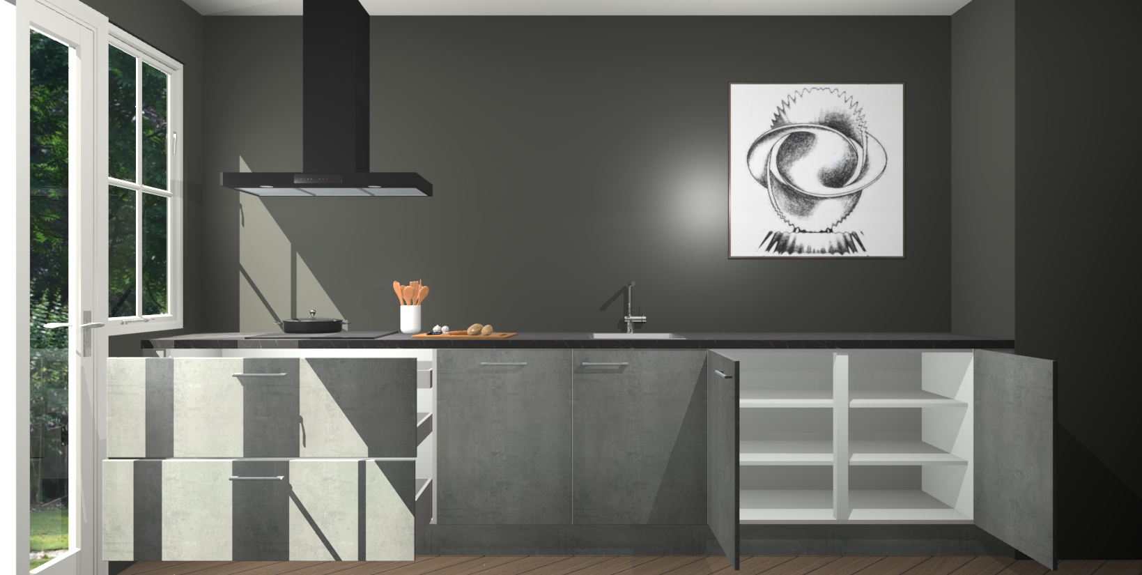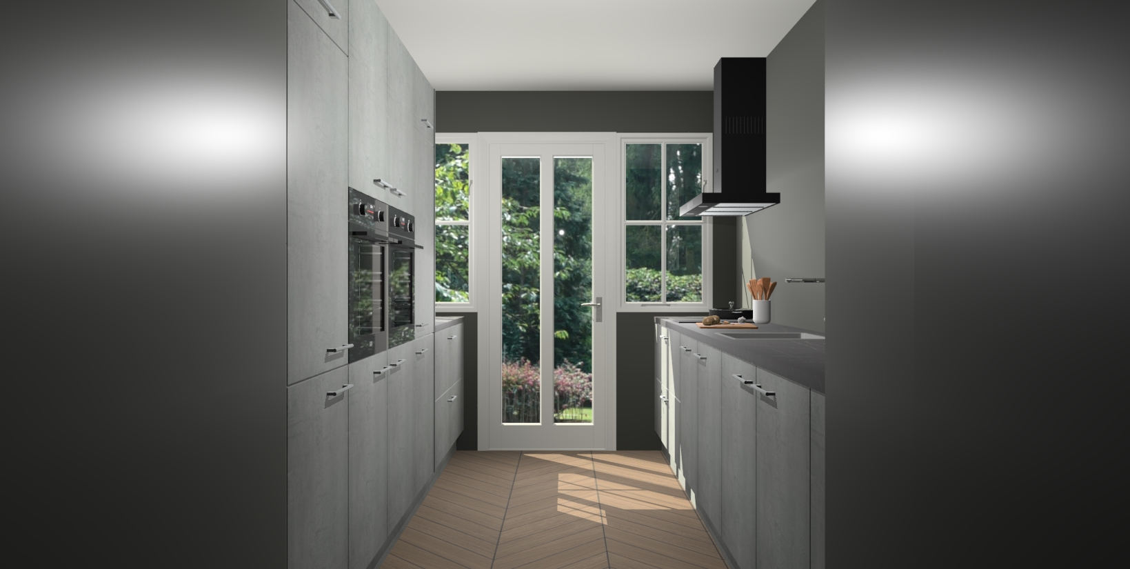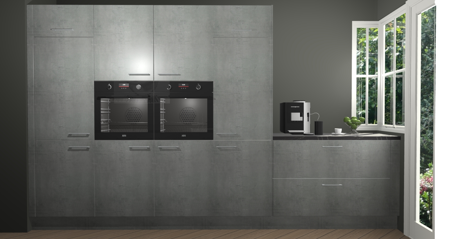 Een stijlvolle en praktische keuken als deze mag gezien worden. Dankzij de prachtige beton parelgrijs matte afwerking wordt de keuken gemakkelijk het middelpunt van uw huis - hij ziet er geweldig uit onder allerlei lichtomstandigheden, van dag tot nacht!