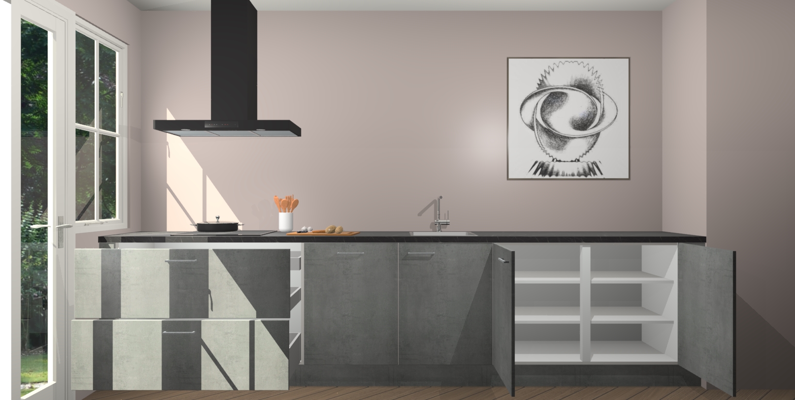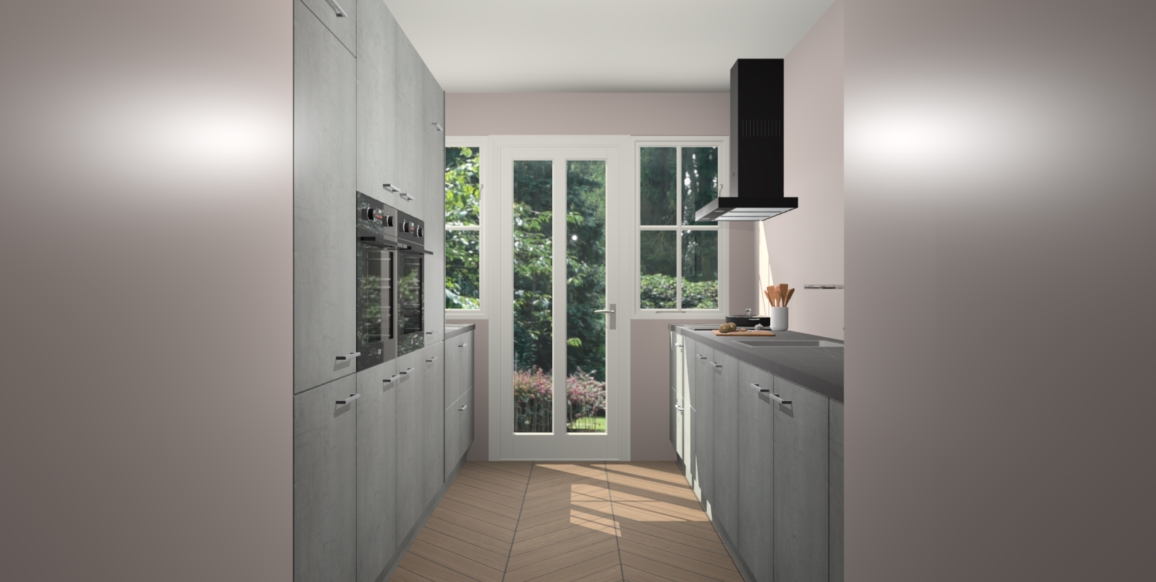 Een stijlvolle en praktische keuken als deze mag gezien worden. Dankzij de prachtige beton parelgrijs matte afwerking wordt de keuken gemakkelijk het middelpunt van uw huis - hij ziet er geweldig uit onder allerlei lichtomstandigheden, van dag tot nacht!