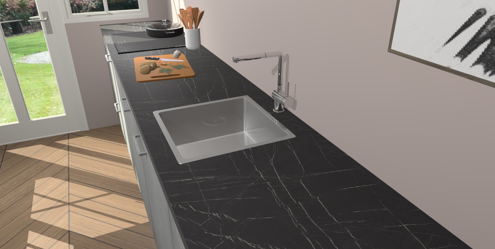 - Bij een hoekwerkblad zijn de hoeken in gevreesd en op maat gemaakt
