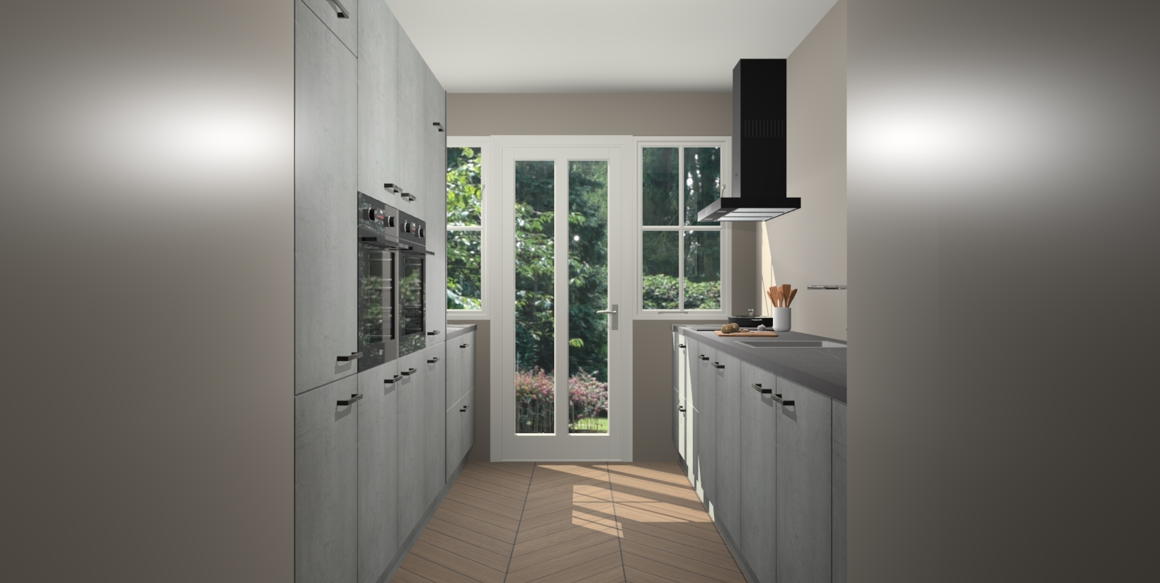 Een stijlvolle en praktische keuken als deze mag gezien worden. Dankzij de prachtige beton parelgrijs matte afwerking wordt de keuken gemakkelijk het middelpunt van uw huis - hij ziet er geweldig uit onder allerlei lichtomstandigheden, van dag tot nacht!