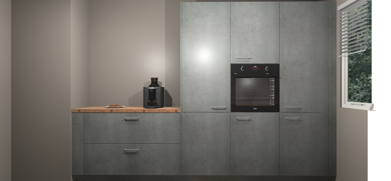 Een stijlvolle en praktische keuken als deze mag gezien worden. Dankzij de prachtige Beton Parelgrijs matte afwerking wordt de keuken gemakkelijk het middelpunt van uw huis - hij ziet er geweldig uit onder allerlei lichtomstandigheden, van dag tot nacht!