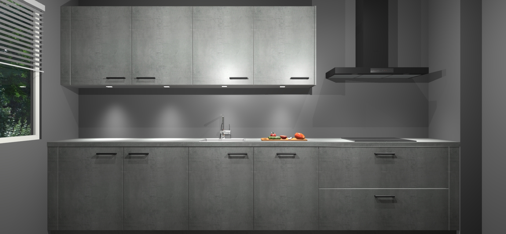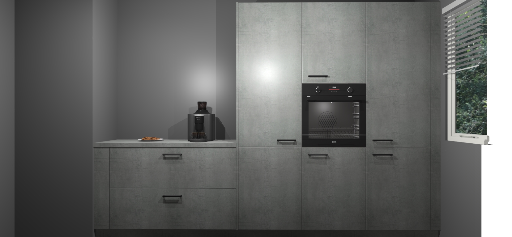 Een stijlvolle en praktische keuken als deze mag gezien worden. Dankzij de prachtige Beton Parelgrijs matte afwerking wordt de keuken gemakkelijk het middelpunt van uw huis - hij ziet er geweldig uit onder allerlei lichtomstandigheden, van dag tot nacht!
