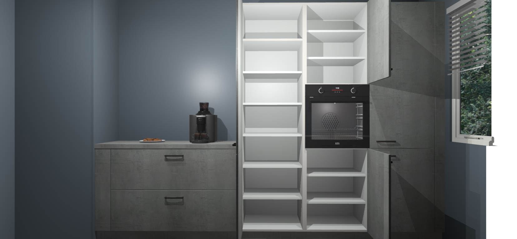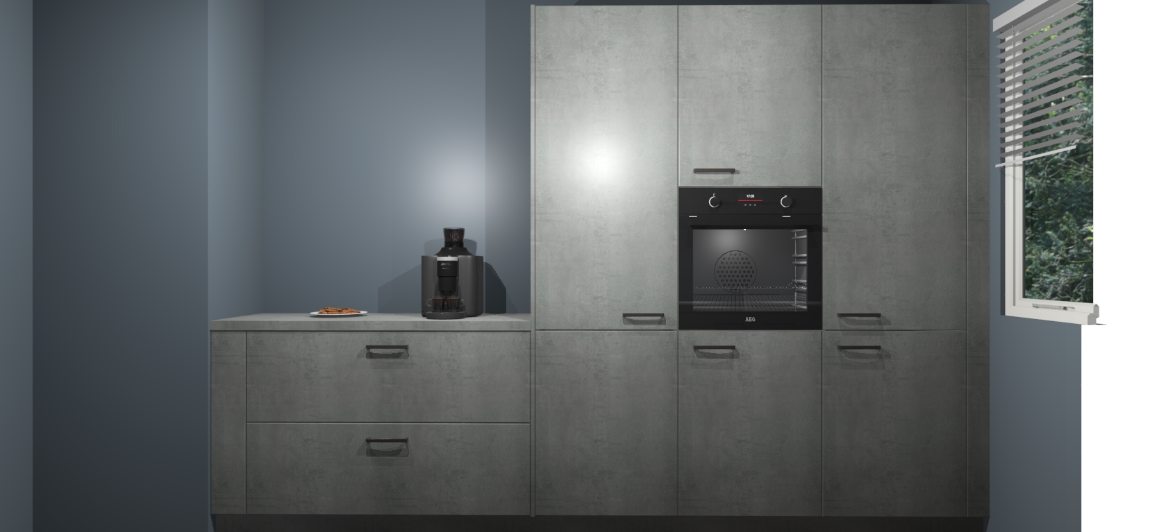 Een stijlvolle en praktische keuken als deze mag gezien worden. Dankzij de prachtige Beton Parelgrijs matte afwerking wordt de keuken gemakkelijk het middelpunt van uw huis - hij ziet er geweldig uit onder allerlei lichtomstandigheden, van dag tot nacht!