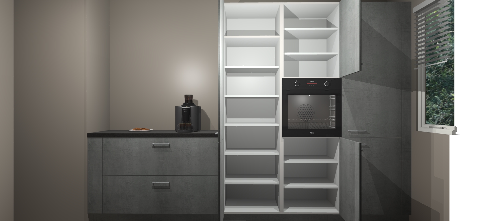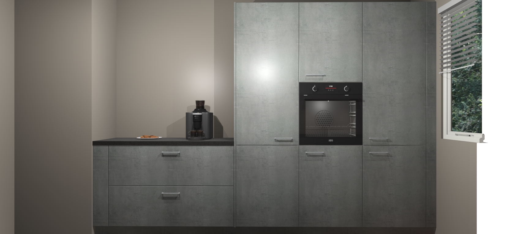 Een stijlvolle en praktische keuken als deze mag gezien worden. Dankzij de prachtige Beton Parelgrijs matte afwerking wordt de keuken gemakkelijk het middelpunt van uw huis - hij ziet er geweldig uit onder allerlei lichtomstandigheden, van dag tot nacht!