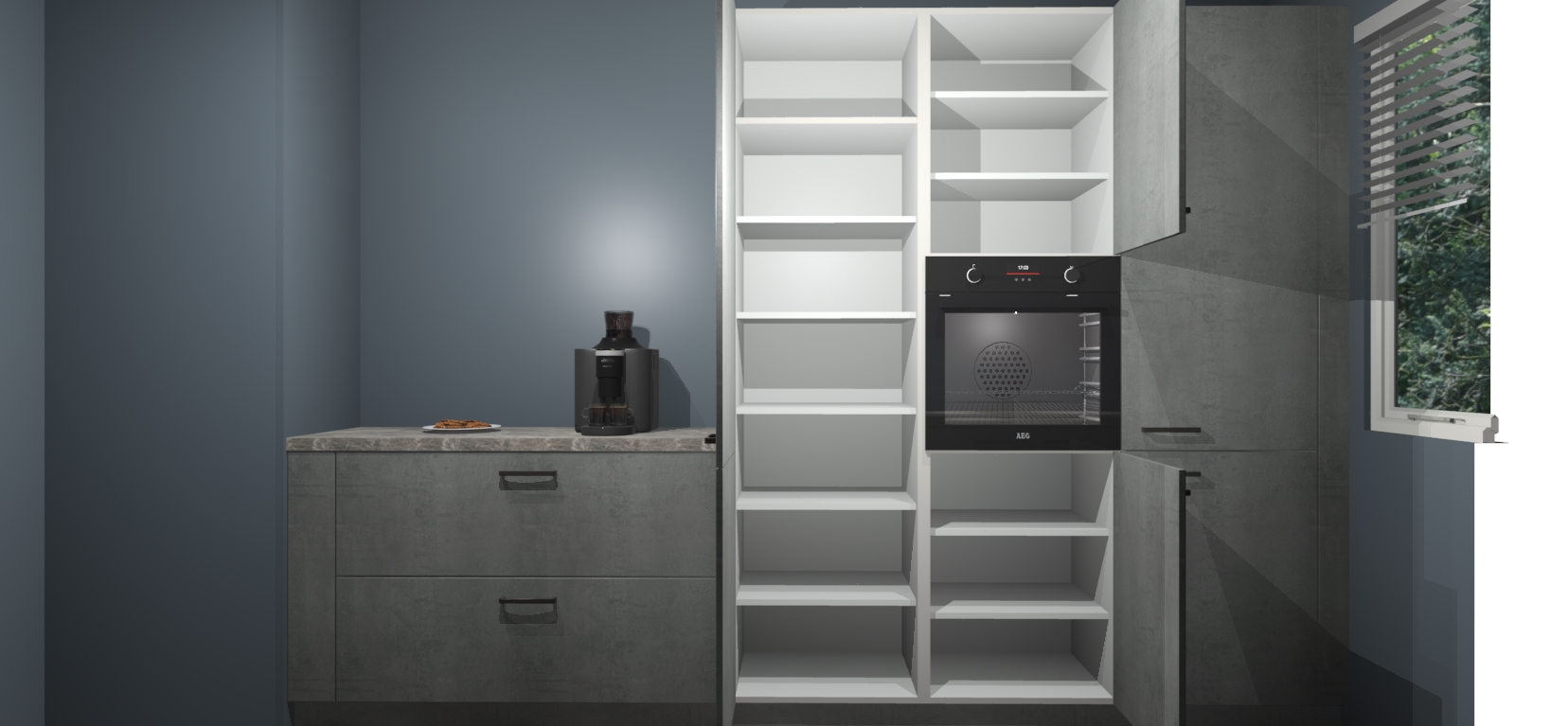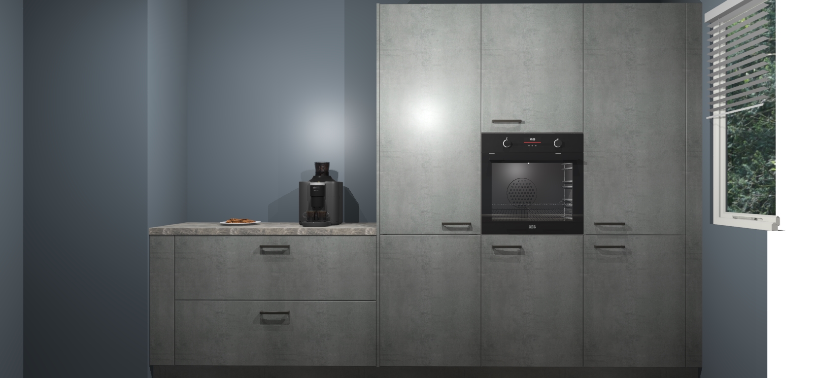 Een stijlvolle en praktische keuken als deze mag gezien worden. Dankzij de prachtige Beton Parelgrijs matte afwerking wordt de keuken gemakkelijk het middelpunt van uw huis - hij ziet er geweldig uit onder allerlei lichtomstandigheden, van dag tot nacht!