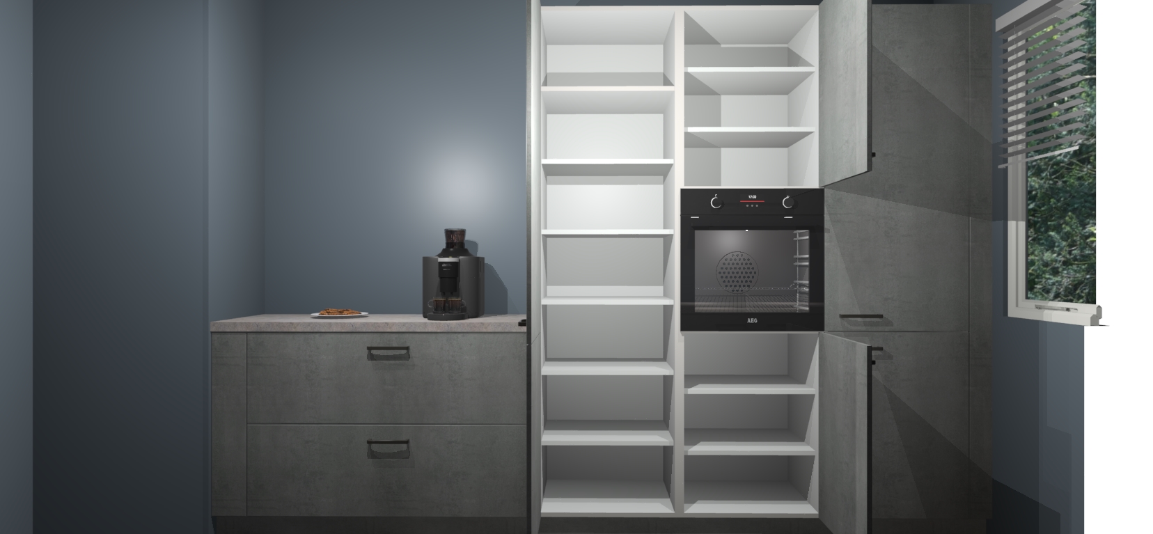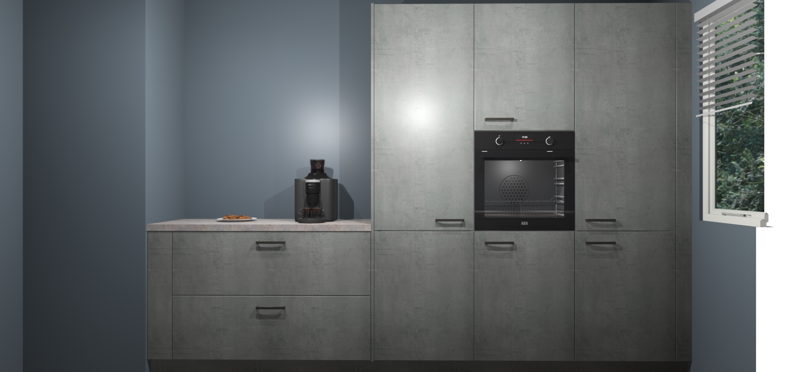 Een stijlvolle en praktische keuken als deze mag gezien worden. Dankzij de prachtige Beton Parelgrijs matte afwerking wordt de keuken gemakkelijk het middelpunt van uw huis - hij ziet er geweldig uit onder allerlei lichtomstandigheden, van dag tot nacht!