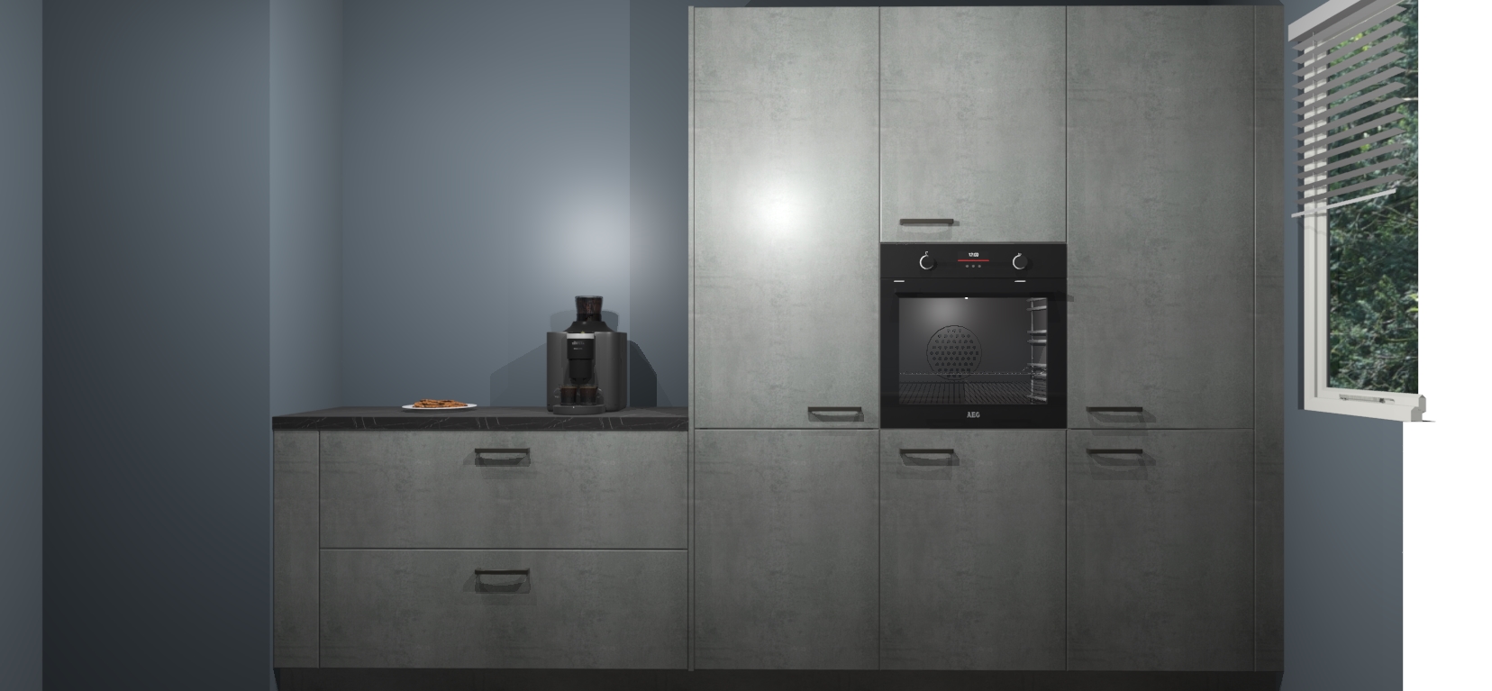 Een stijlvolle en praktische keuken als deze mag gezien worden. Dankzij de prachtige Beton Parelgrijs matte afwerking wordt de keuken gemakkelijk het middelpunt van uw huis - hij ziet er geweldig uit onder allerlei lichtomstandigheden, van dag tot nacht!