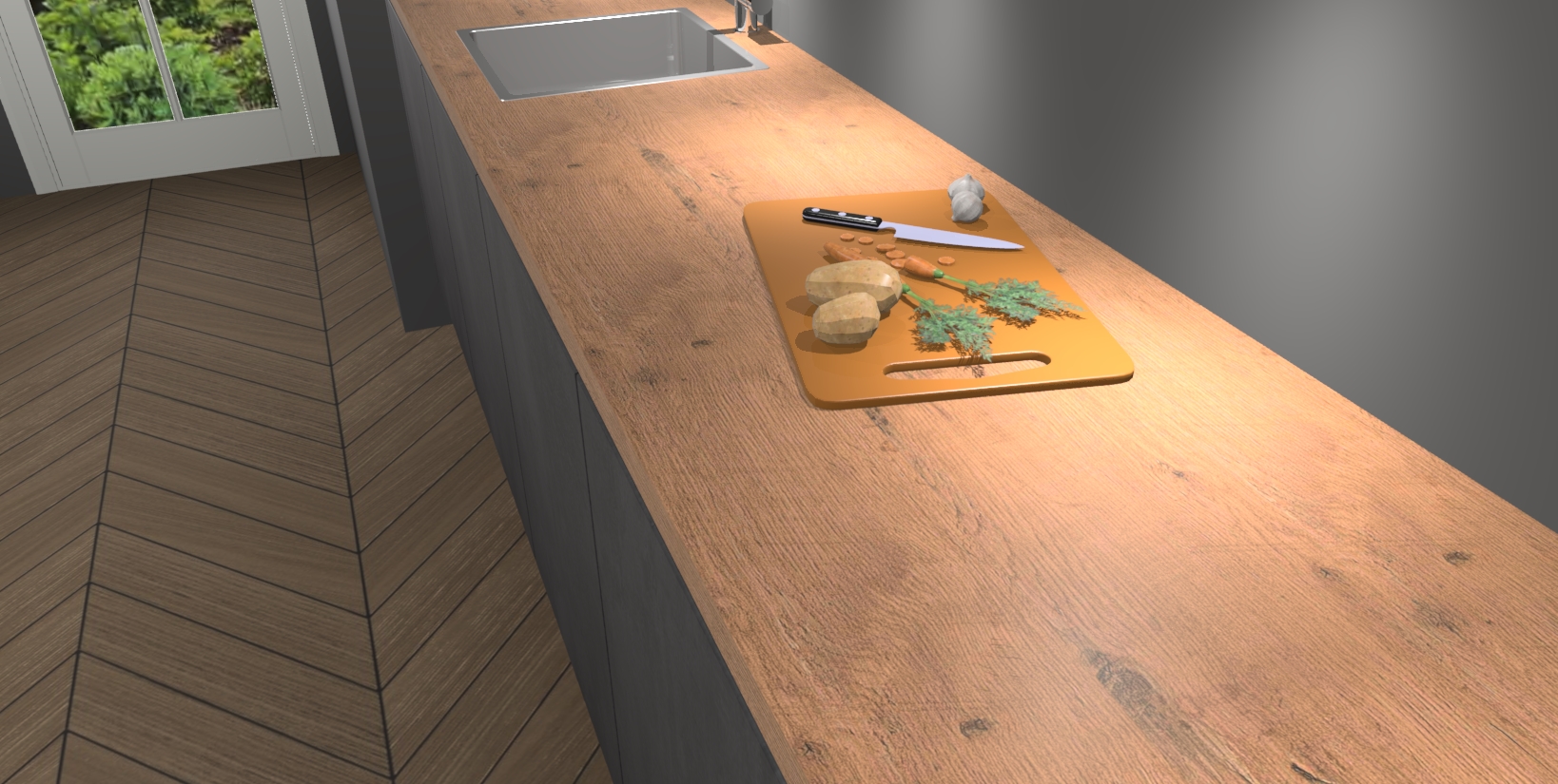 - Bij een hoekwerkblad zijn de hoeken in gevreesd en op maat gemaakt