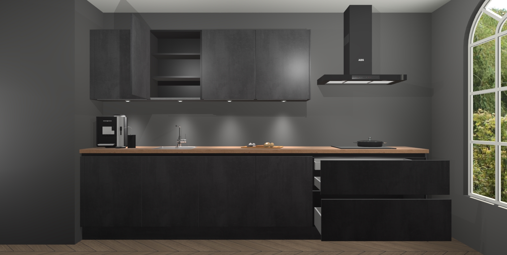 Maak van uw keuken een plek waar u trots op bent - trakteer uzelf vandaag nog op de kwaliteit en elegantie van de Beton Zwarte greeploze keuken Dawei!