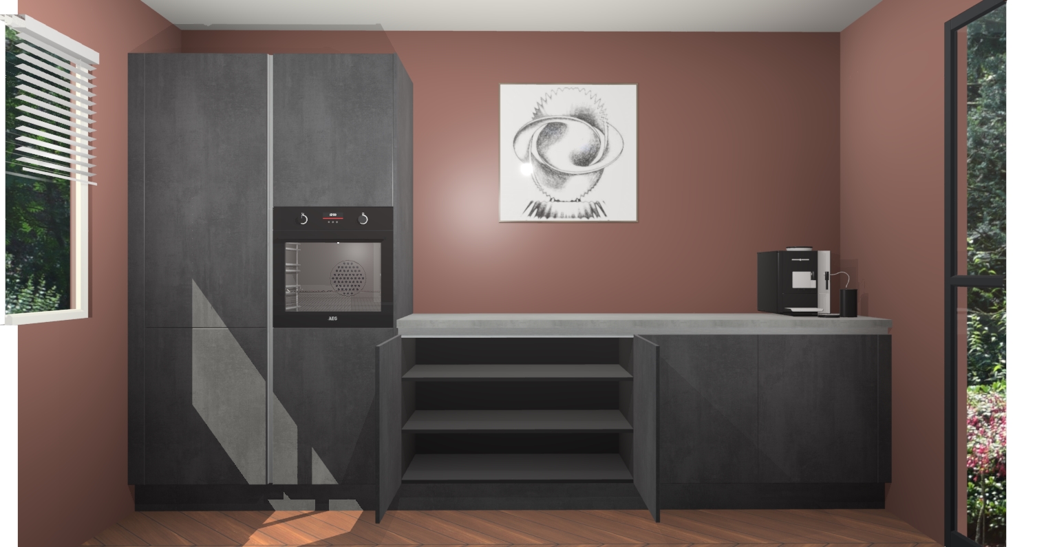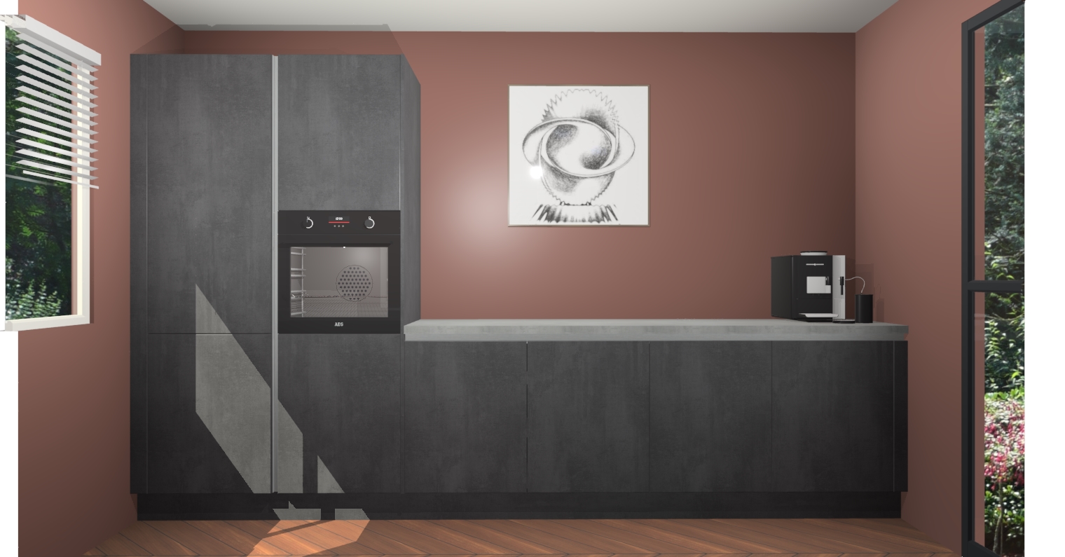 Welkom bij de Beton Zwarte greeploze keuken Lusaka. Deze prachtige keuken zal de komende jaren het middelpunt van de belangstelling in uw huis zijn. Uitgerust met vijf inbouwapparaten komt u nooit kookgereedschap tekort. Bovendien geeft de warme houtlook elke ruimte een uitnodigende en tijdloze uitstraling.