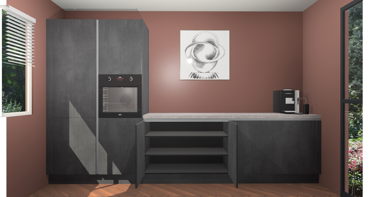 Welkom bij de Beton Zwarte greeploze keuken Lusaka. Deze prachtige keuken zal de komende jaren het middelpunt van de belangstelling in uw huis zijn. Uitgerust met vijf inbouwapparaten komt u nooit kookgereedschap tekort. Bovendien geeft de warme houtlook elke ruimte een uitnodigende en tijdloze uitstraling.