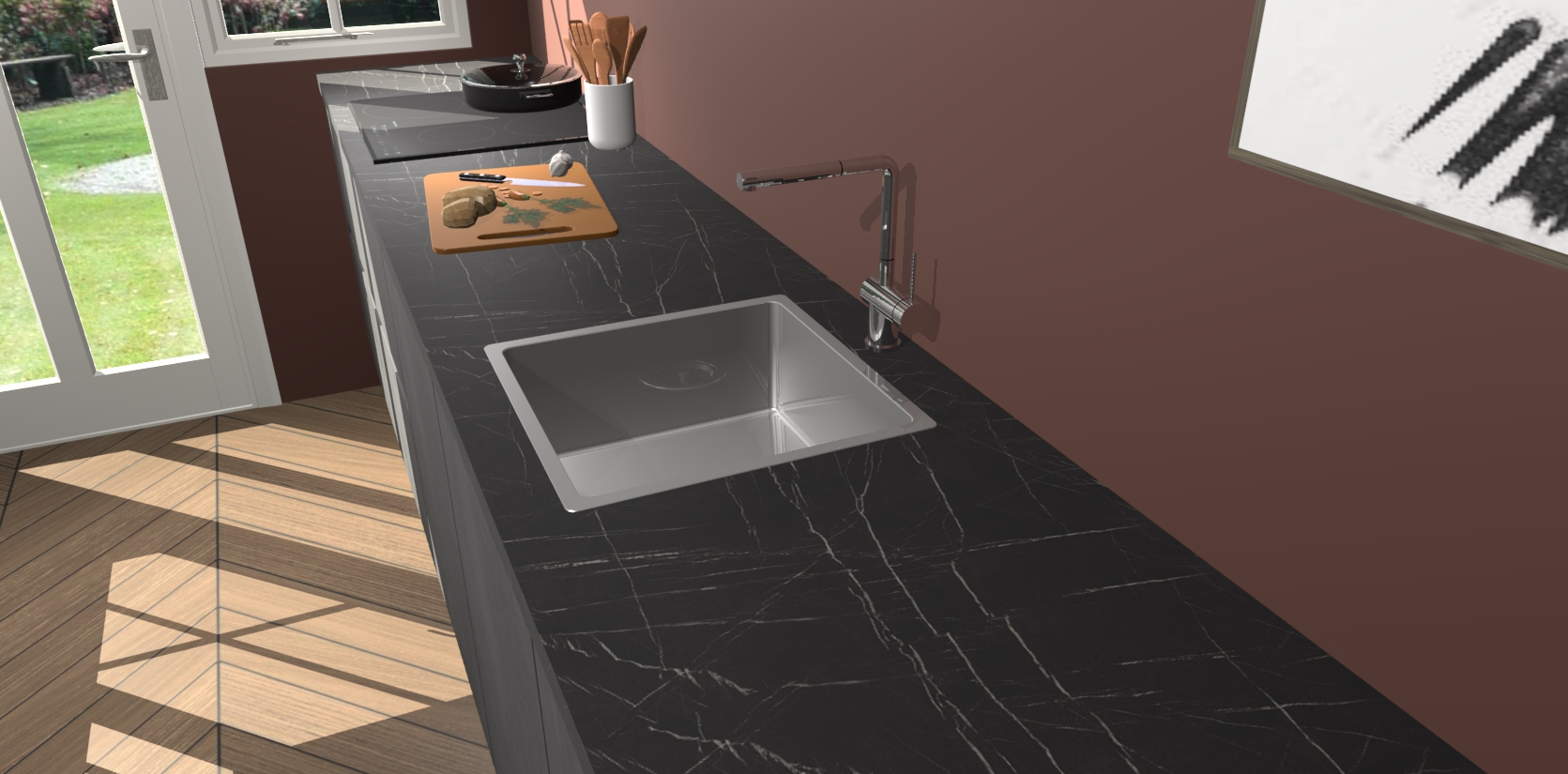 - Bij een hoekwerkblad zijn de hoeken in gevreesd en op maat gemaakt