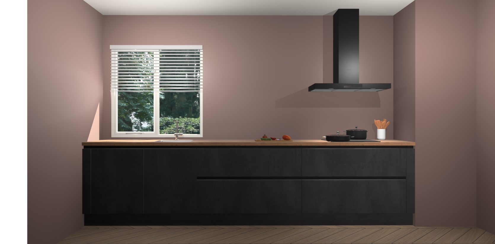 Dankzij de greeploze afwerking past de Beton Zwarte greeploze keuken Turijn naadloos in elk huis of appartement. De soft-close deuren geven je extra gemoedsrust, want ze sluiten vanzelf en slaan nooit dicht! En alsof dat nog niet genoeg is, worden deze kasten volledig gemonteerd geleverd, dus maak je geen zorgen over eventuele installatieproblemen.