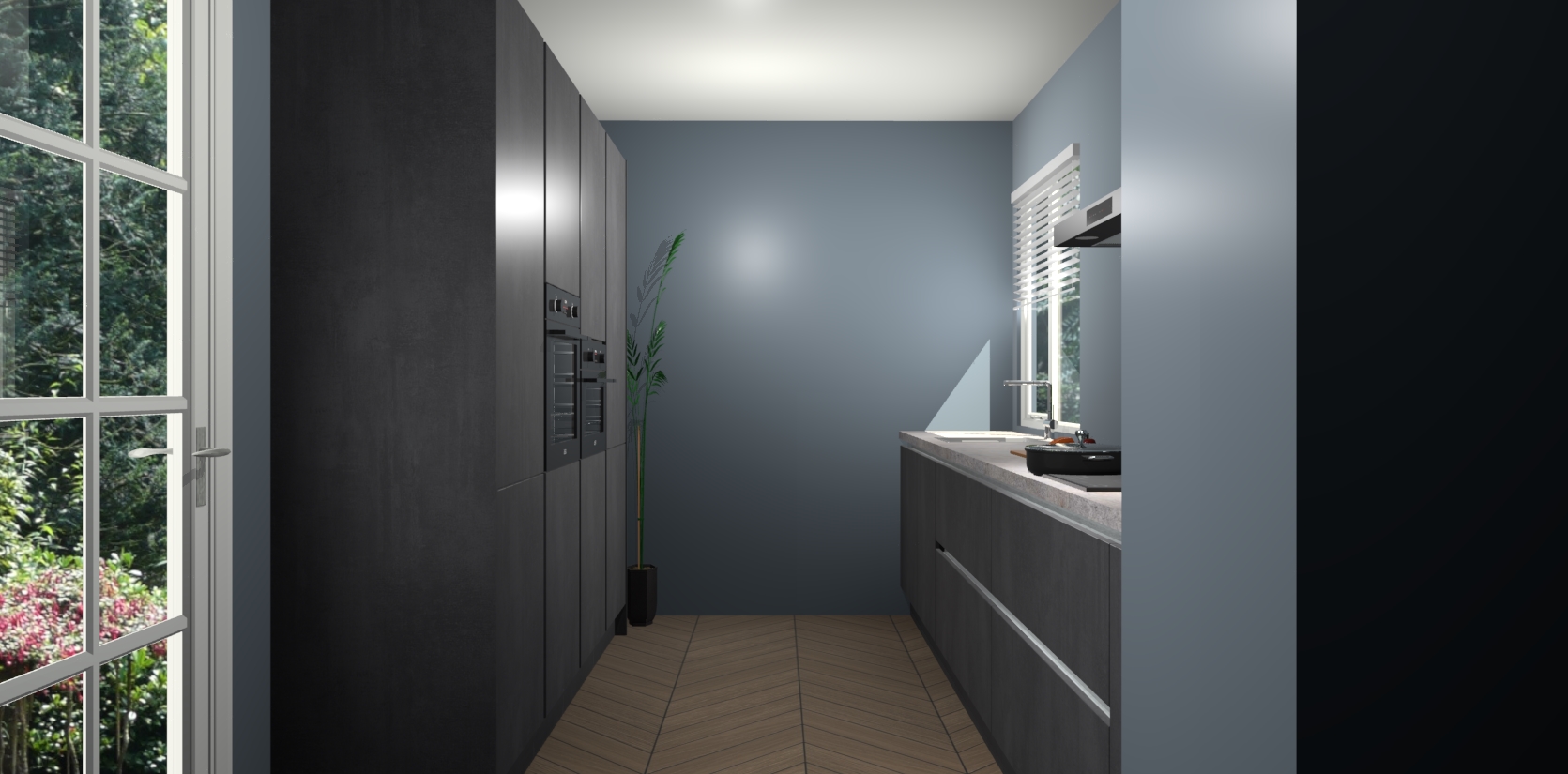 Dankzij de greeploze afwerking past de Beton Zwarte greeploze keuken Turijn naadloos in elk huis of appartement. De soft-close deuren geven je extra gemoedsrust, want ze sluiten vanzelf en slaan nooit dicht! En alsof dat nog niet genoeg is, worden deze kasten volledig gemonteerd geleverd, dus maak je geen zorgen over eventuele installatieproblemen.