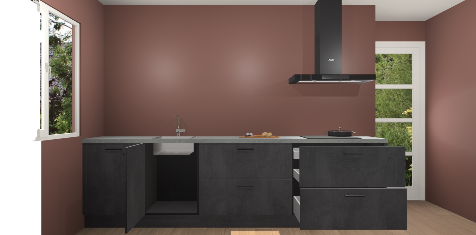 De softclose deuren openen en sluiten is ook heel eenvoudig - geniet van een moeiteloze keukenervaring, zelfs als er kinderen rondlopen. Voor extra gemak bij het plaatsen van uw bestelling bieden we ook een upgrade naar een kookplaat met geïntegreerde afzuiging.
