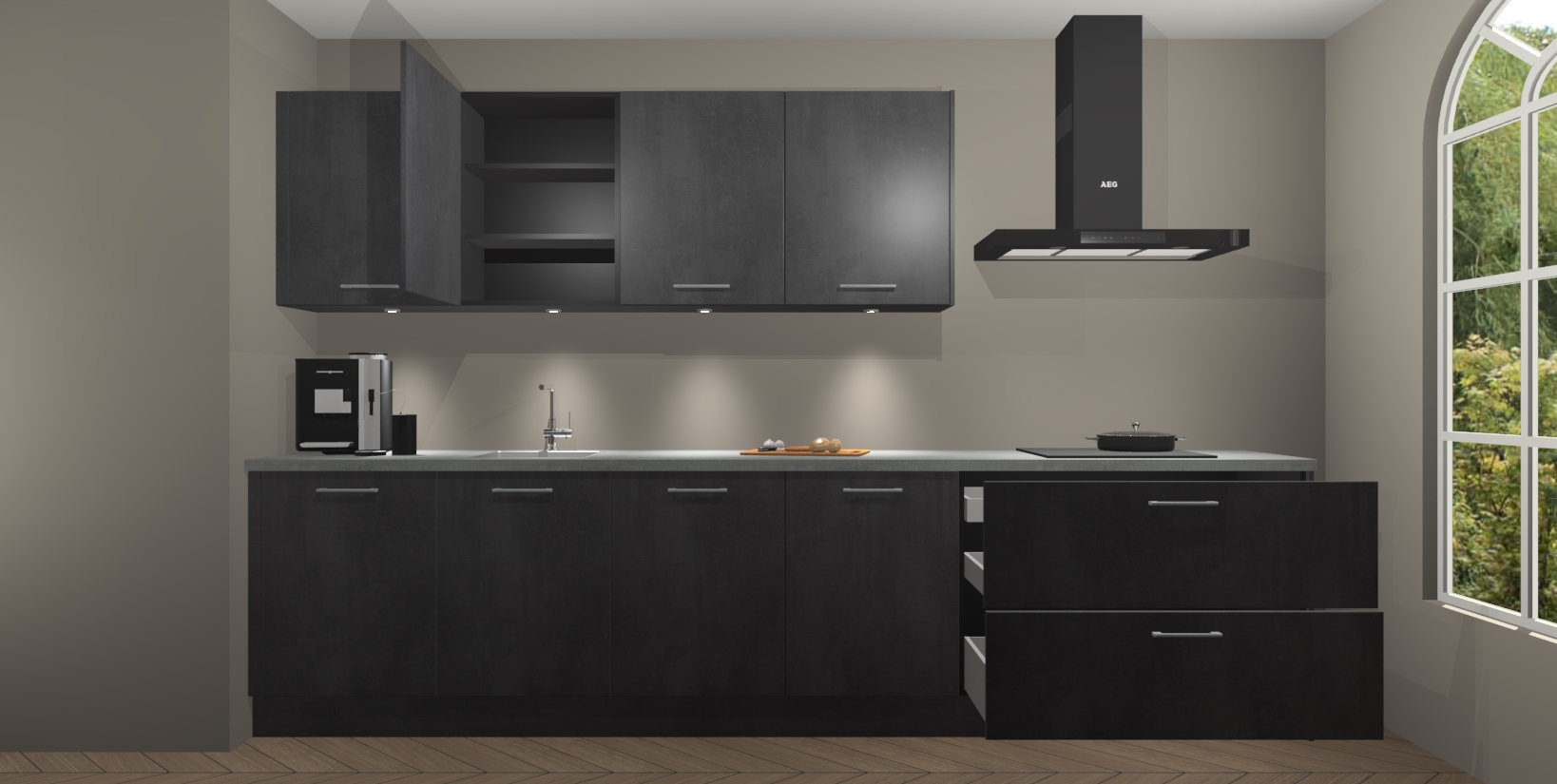 Maak van uw keuken een plek waar u trots op bent - trakteer uzelf vandaag nog op de kwaliteit en elegantie van de Beton Zwarte keuken Dawei!