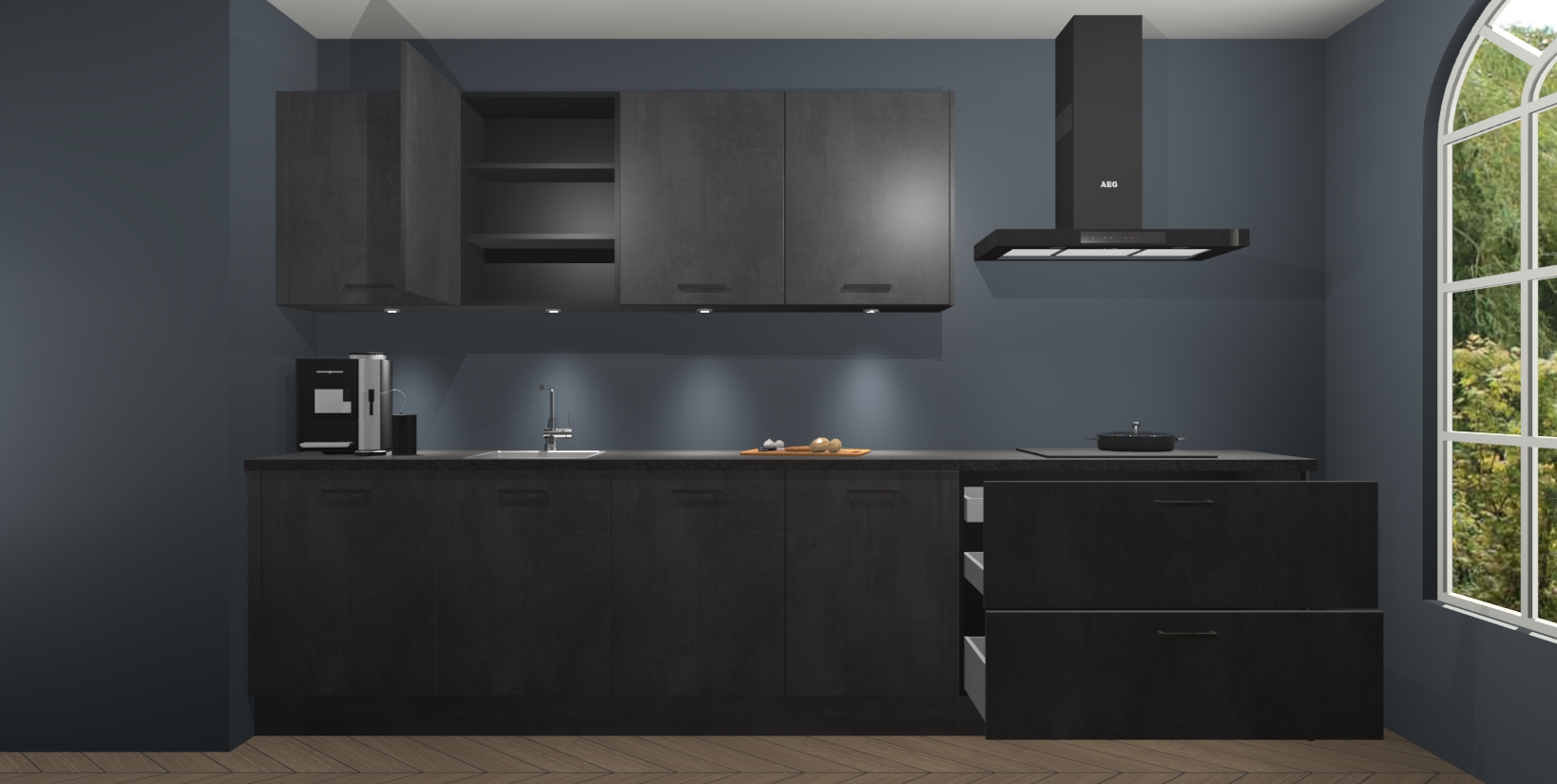 Maak van uw keuken een plek waar u trots op bent - trakteer uzelf vandaag nog op de kwaliteit en elegantie van de Beton Zwarte keuken Dawei!