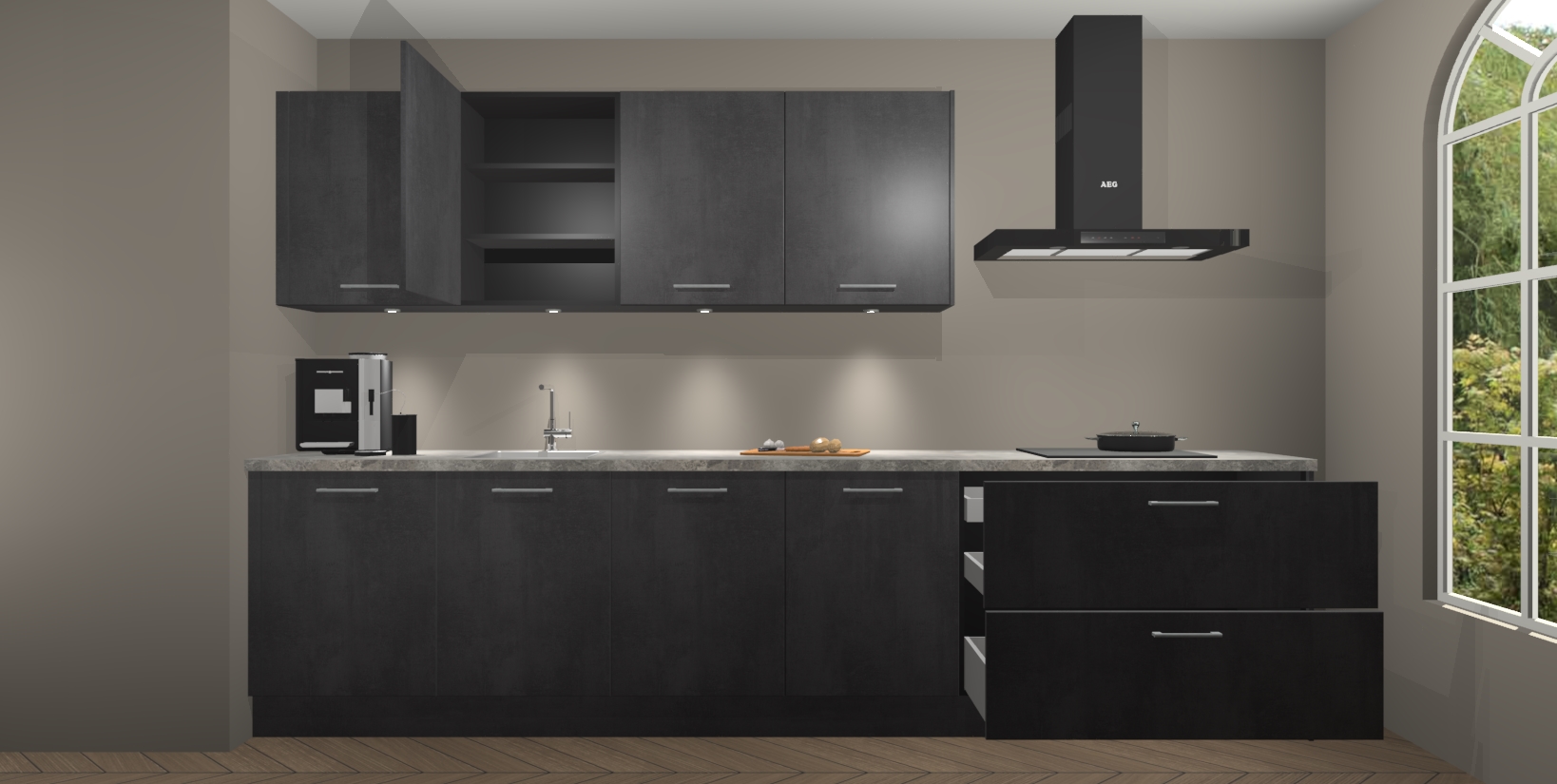 Maak van uw keuken een plek waar u trots op bent - trakteer uzelf vandaag nog op de kwaliteit en elegantie van de Beton Zwarte keuken Dawei!