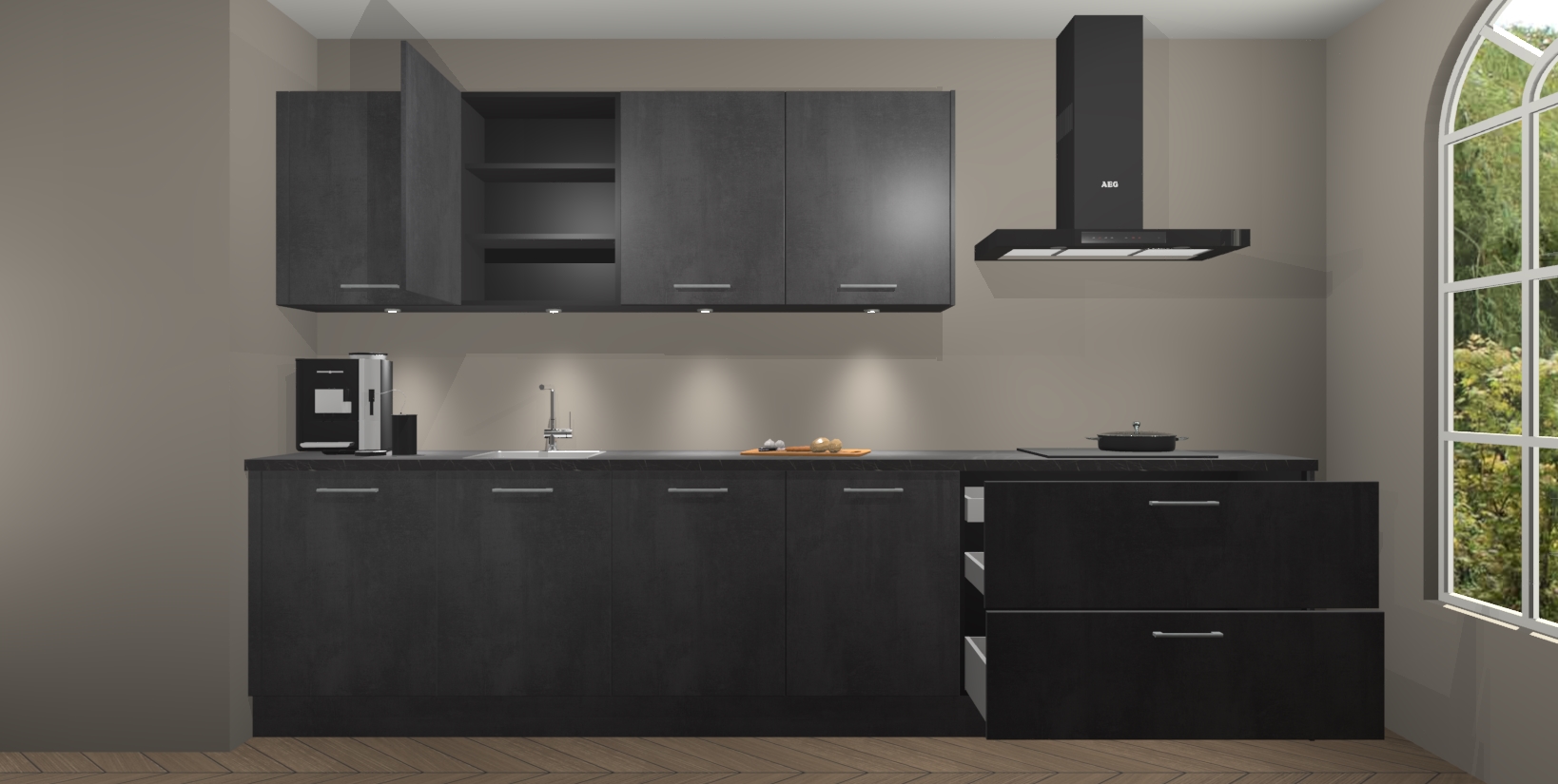 Maak van uw keuken een plek waar u trots op bent - trakteer uzelf vandaag nog op de kwaliteit en elegantie van de Beton Zwarte keuken Dawei!