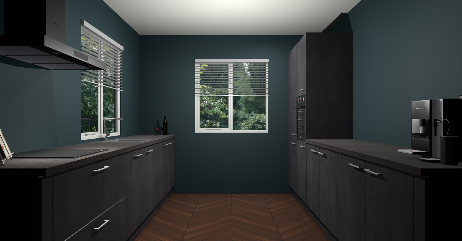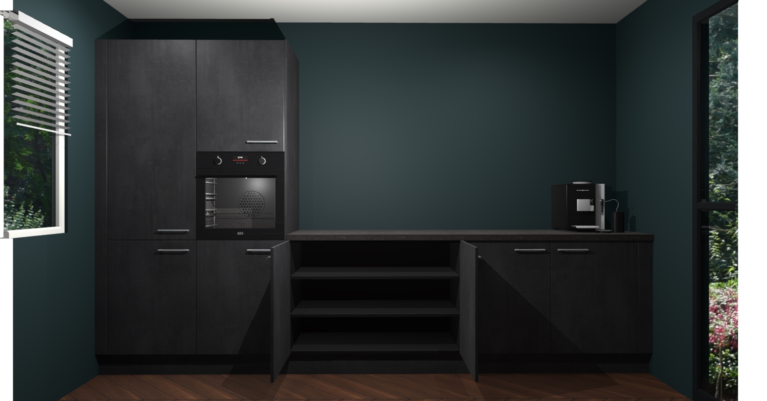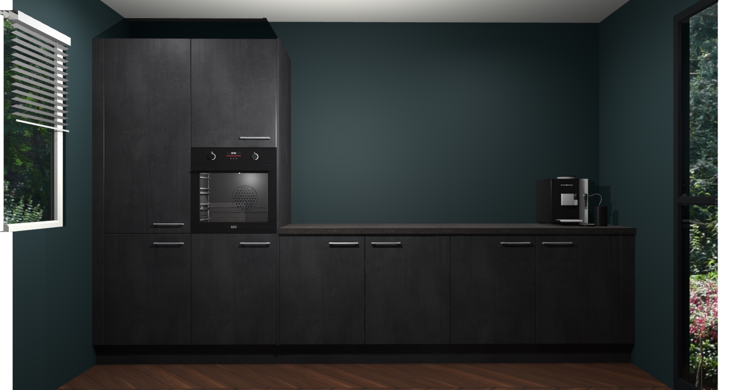 Welkom bij de Beton Zwarte keuken Lusaka. Deze prachtige keuken zal de komende jaren het middelpunt van de belangstelling in uw huis zijn. Uitgerust met vijf inbouwapparaten komt u nooit kookgereedschap tekort. Bovendien geeft de warme houtlook elke ruimte een uitnodigende en tijdloze uitstraling.