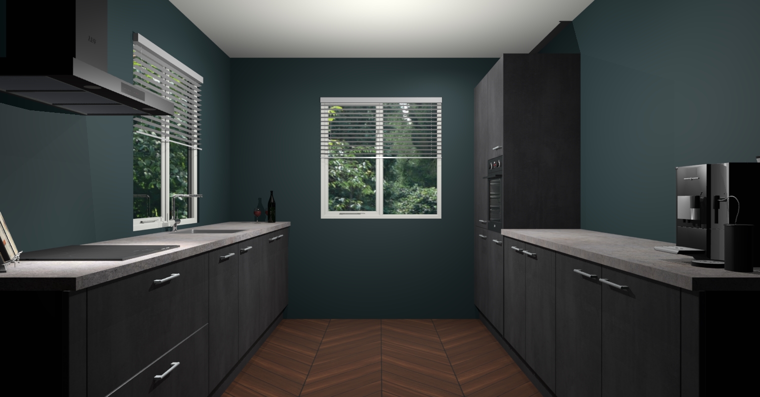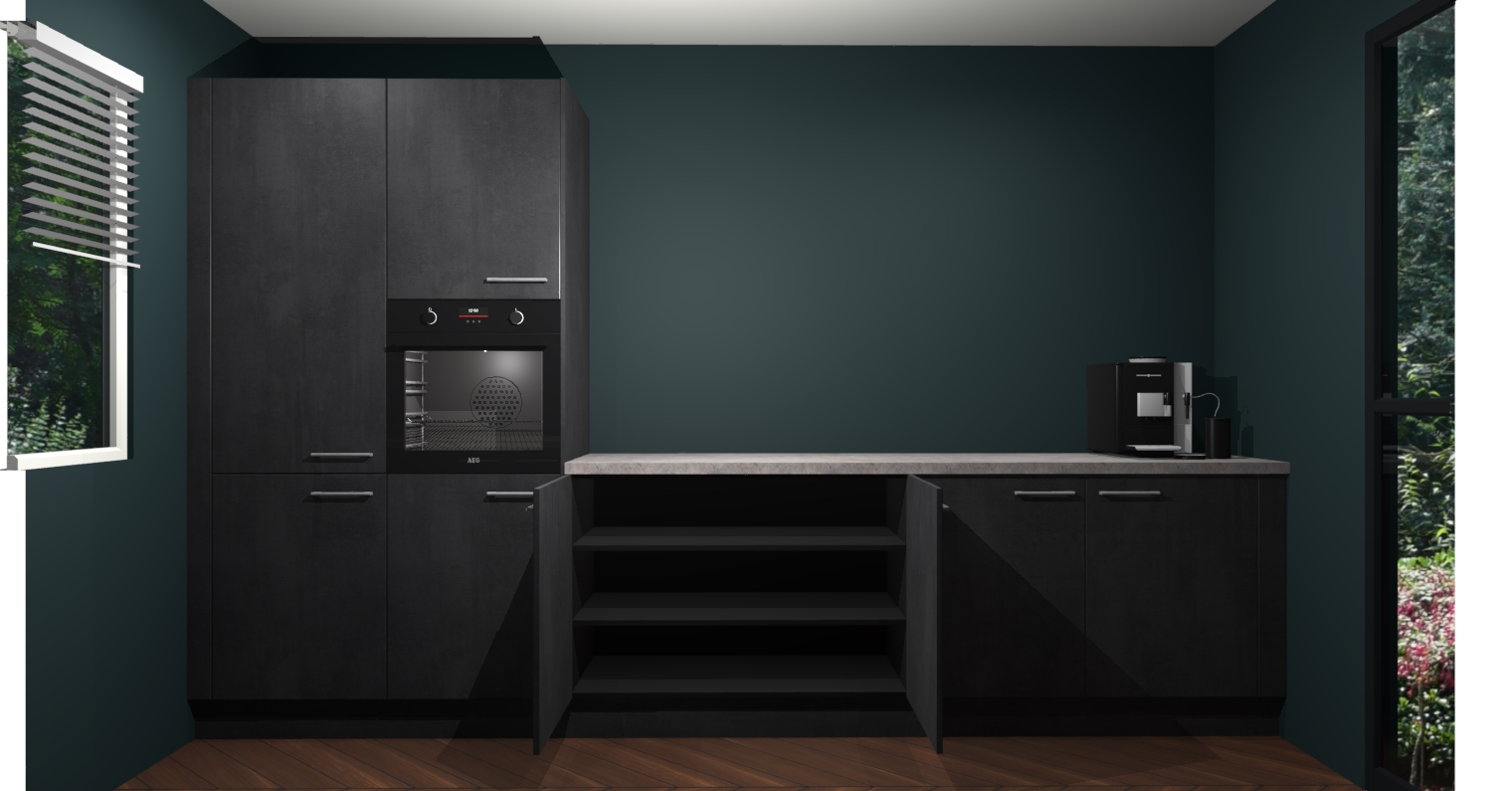 Welkom bij de Beton Zwarte keuken Lusaka. Deze prachtige keuken zal de komende jaren het middelpunt van de belangstelling in uw huis zijn. Uitgerust met vijf inbouwapparaten komt u nooit kookgereedschap tekort. Bovendien geeft de warme houtlook elke ruimte een uitnodigende en tijdloze uitstraling.