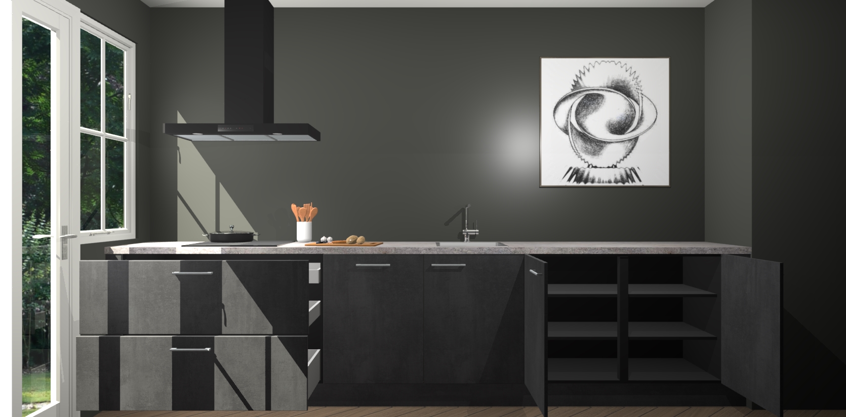 Dankzij de afwerking past de Beton Zwarte keuken Olympia naadloos in elk huis of appartement. De soft-close deuren geven je extra gemoedsrust, want ze sluiten vanzelf en slaan nooit dicht! En alsof dat nog niet genoeg is, worden deze kasten volledig gemonteerd geleverd, dus maak je geen zorgen over eventuele installatieproblemen.