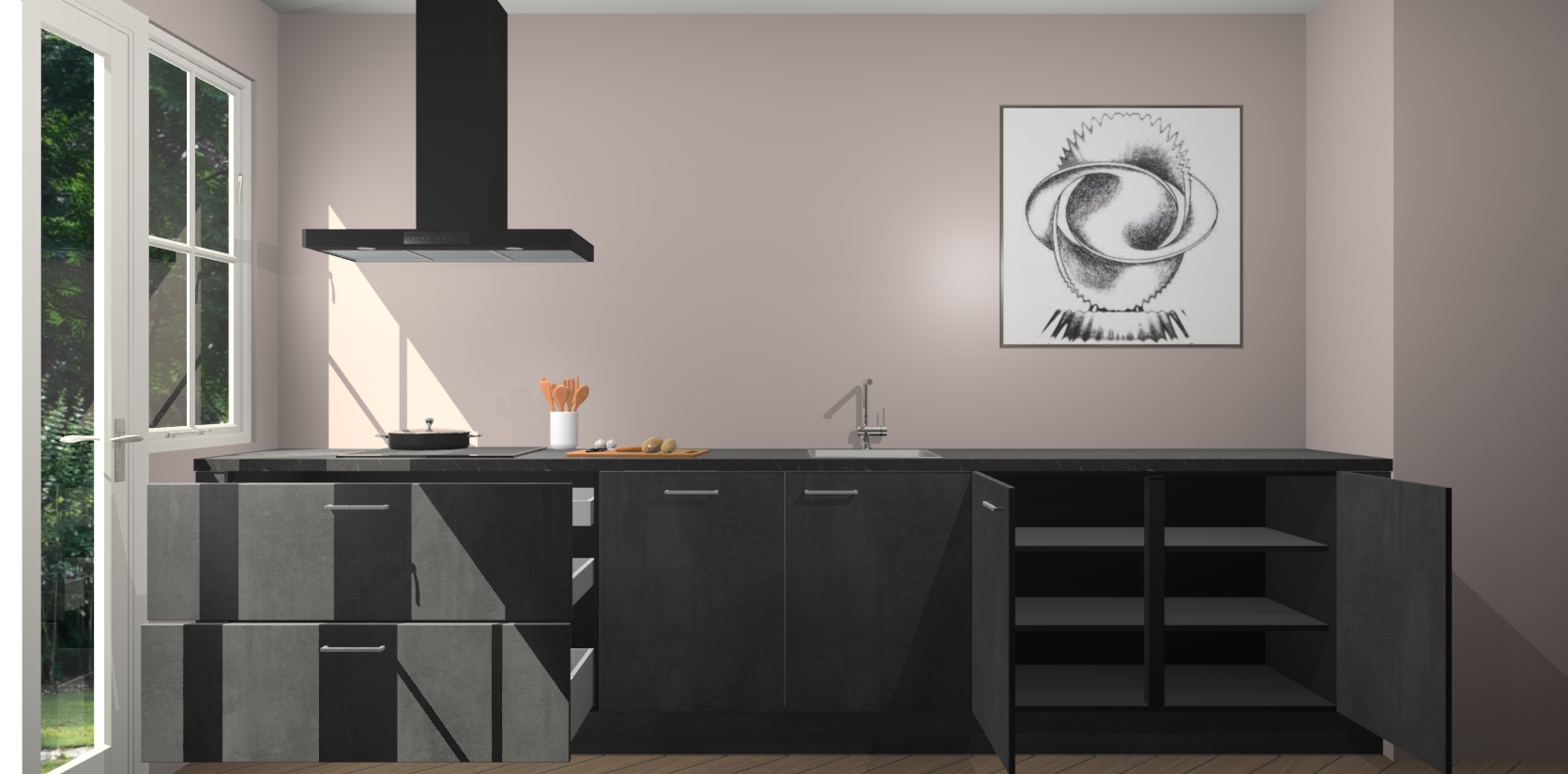 Dankzij de afwerking past de Beton Zwarte keuken Olympia naadloos in elk huis of appartement. De soft-close deuren geven je extra gemoedsrust, want ze sluiten vanzelf en slaan nooit dicht! En alsof dat nog niet genoeg is, worden deze kasten volledig gemonteerd geleverd, dus maak je geen zorgen over eventuele installatieproblemen.