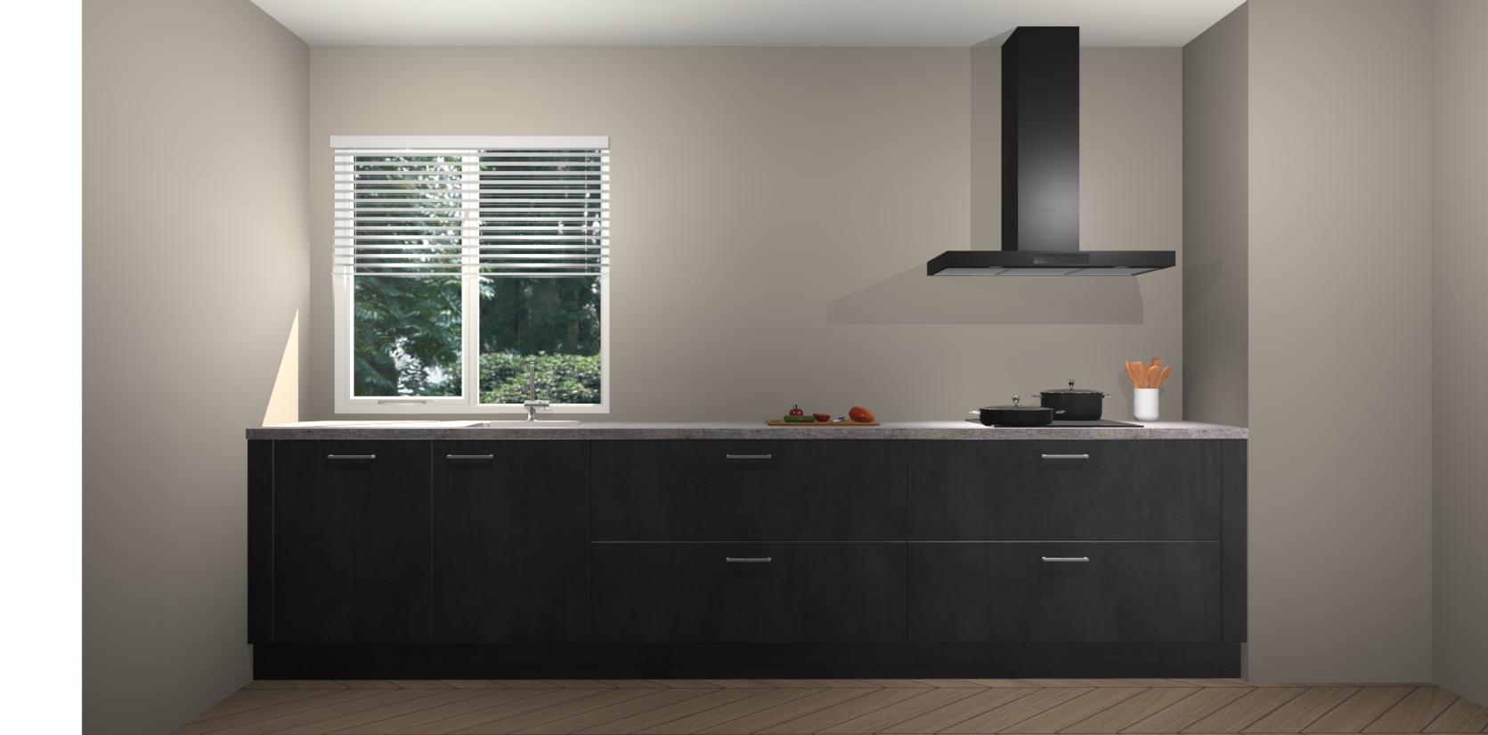 Dus waarom wachten? Maak indruk op uw gasten met een tijdloos chique Beton Zwarte keuken Turijn! Dit luxueuze ontwerp zal zeker de aandacht trekken. Koop de uwe vandaag nog, zolang de voorraad strekt!