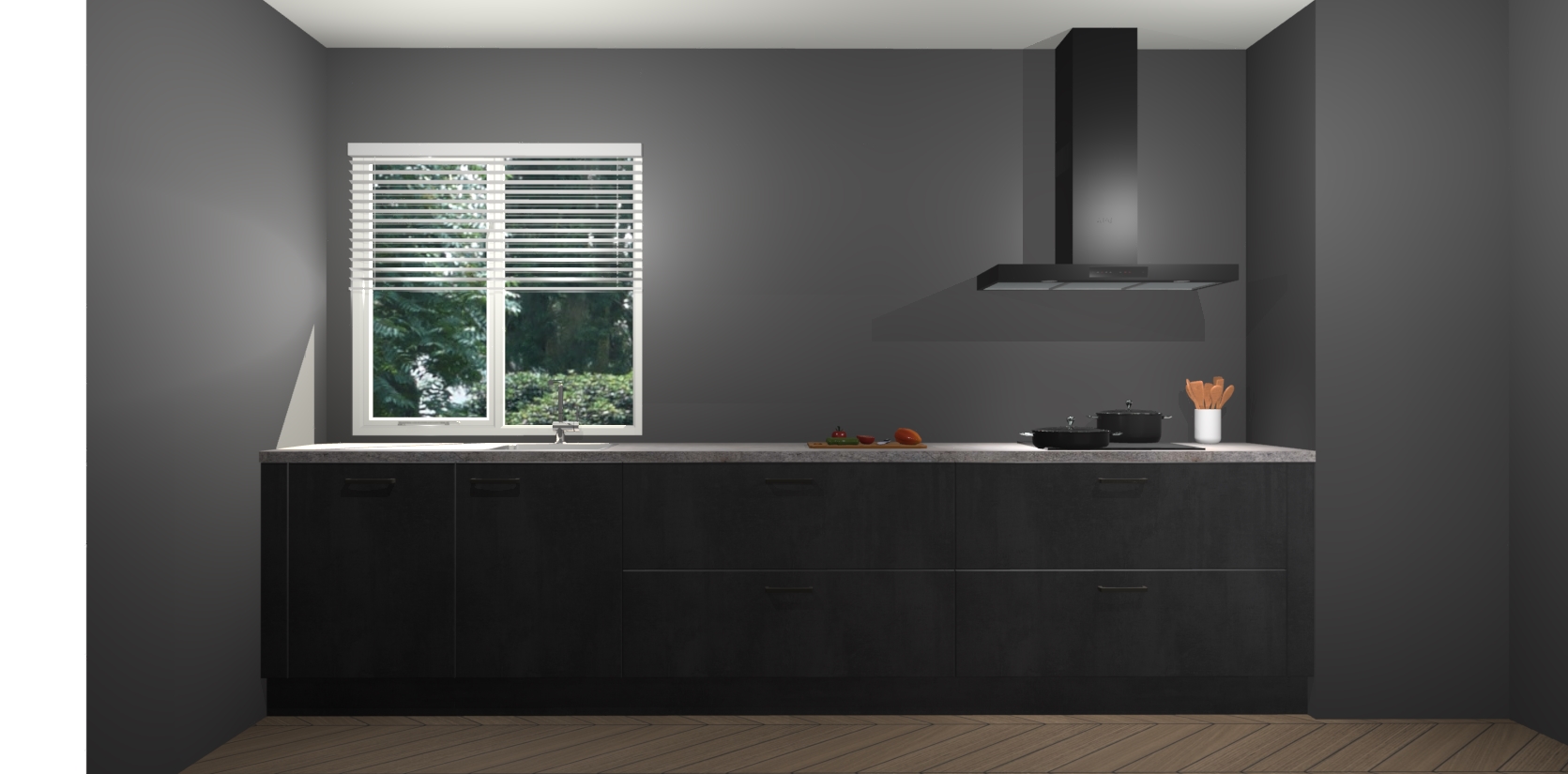 Dus waarom wachten? Maak indruk op uw gasten met een tijdloos chique Beton Zwarte keuken Turijn! Dit luxueuze ontwerp zal zeker de aandacht trekken. Koop de uwe vandaag nog, zolang de voorraad strekt!