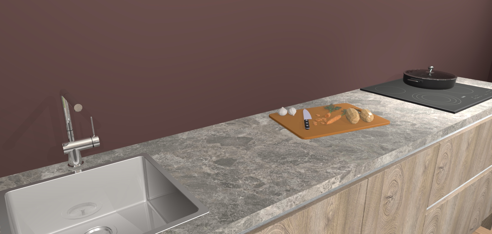 - Uitsparing van kookplaat, spoelbak en kraan dient u zelf te verzorgen.
