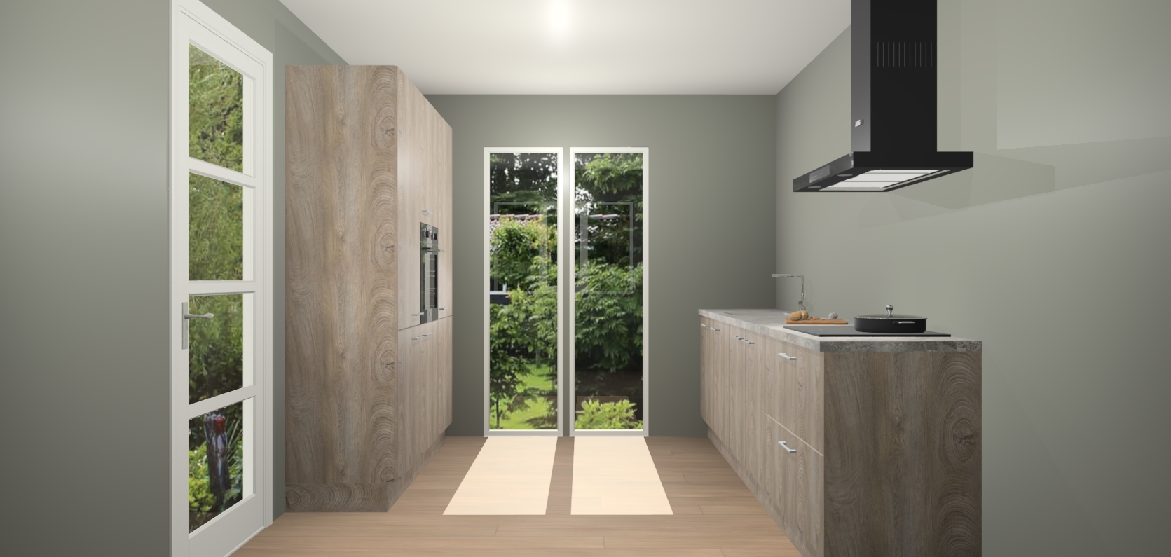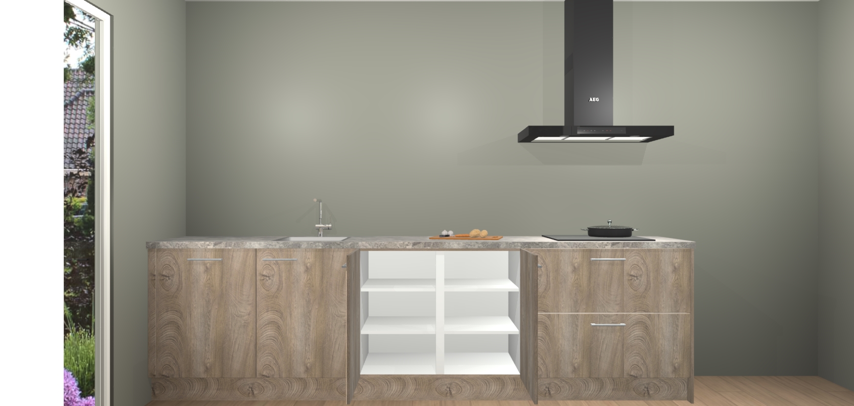 De softclose deuren openen en sluiten is ook heel eenvoudig - geniet van een moeiteloze keukenervaring, zelfs als er kinderen rondlopen. Voor extra gemak bij het plaatsen van uw bestelling bieden we ook een upgrade naar een kookplaat met geïntegreerde afzuiging.