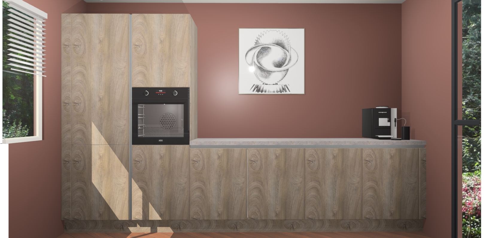 Welkom bij de Cantaro Eiken greeploze keuken Lusaka. Deze prachtige keuken zal de komende jaren het middelpunt van de belangstelling in uw huis zijn. Uitgerust met vijf inbouwapparaten komt u nooit kookgereedschap tekort. Bovendien geeft de warme houtlook elke ruimte een uitnodigende en tijdloze uitstraling.