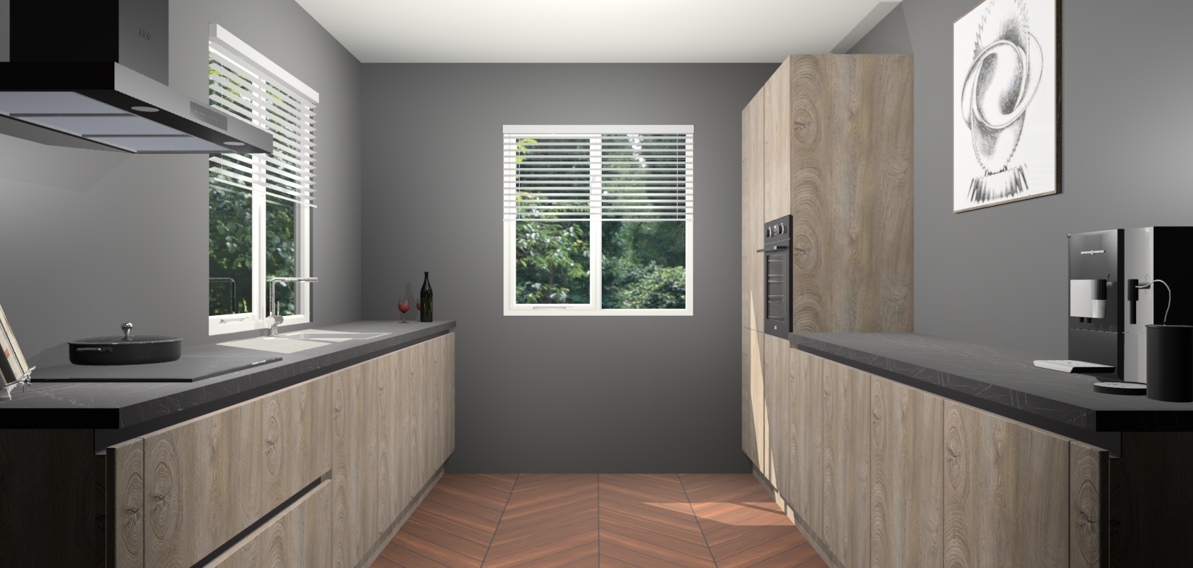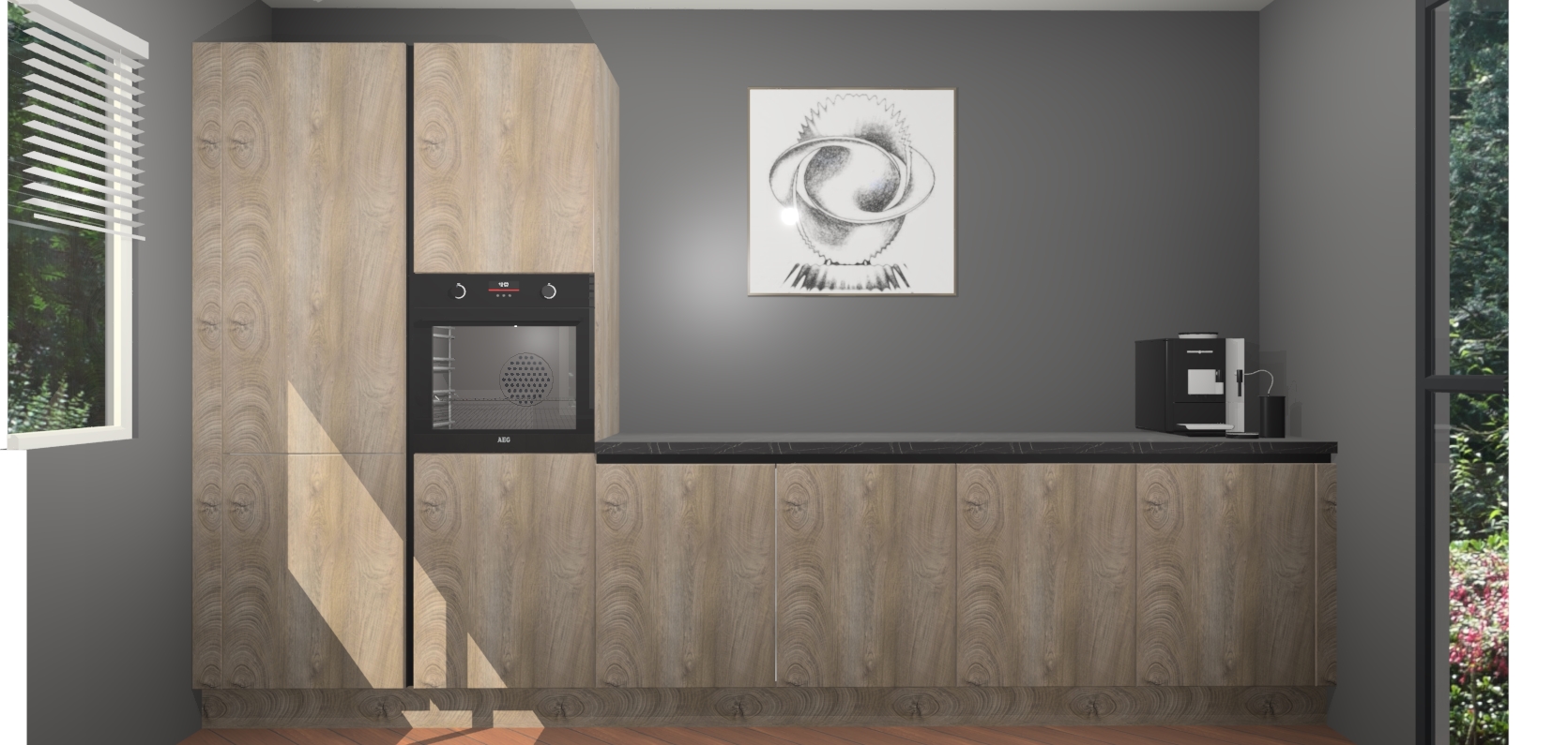 Welkom bij de Cantaro Eiken greeploze keuken Lusaka. Deze prachtige keuken zal de komende jaren het middelpunt van de belangstelling in uw huis zijn. Uitgerust met vijf inbouwapparaten komt u nooit kookgereedschap tekort. Bovendien geeft de warme houtlook elke ruimte een uitnodigende en tijdloze uitstraling.