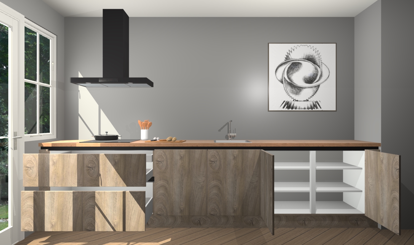 Inclusief plinten, stelpoten en werkblad