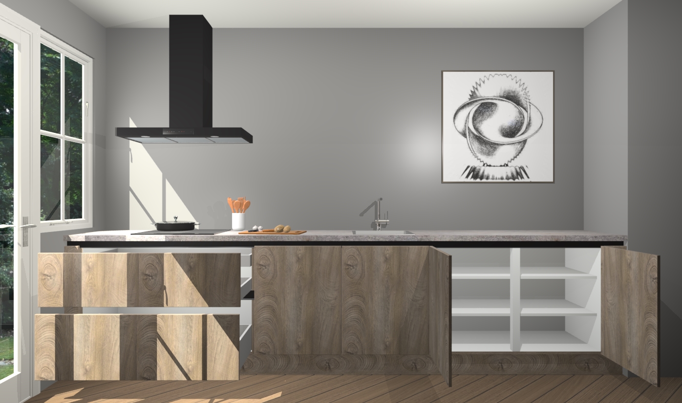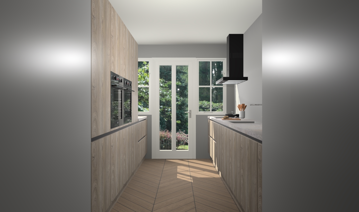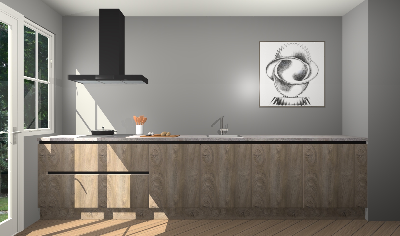 Een stijlvolle en praktische keuken als deze mag gezien worden. Dankzij de prachtige cantaro eiken matte afwerking wordt de keuken gemakkelijk het middelpunt van uw huis - hij ziet er geweldig uit onder allerlei lichtomstandigheden, van dag tot nacht!