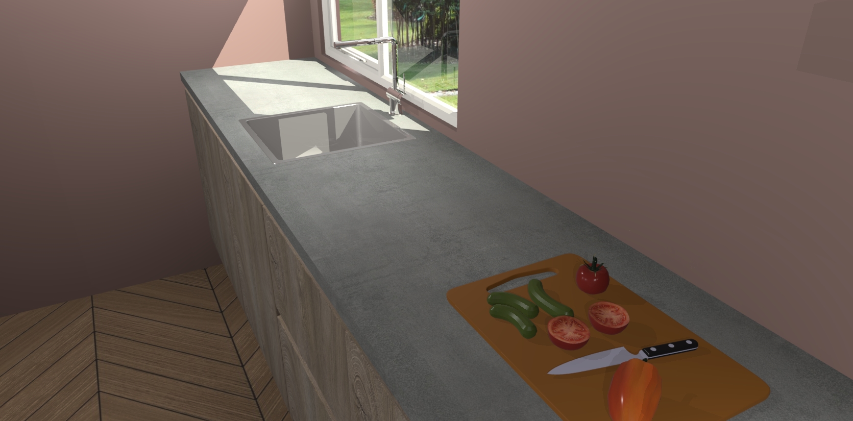 - Bij een hoekwerkblad zijn de hoeken in gevreesd en op maat gemaakt