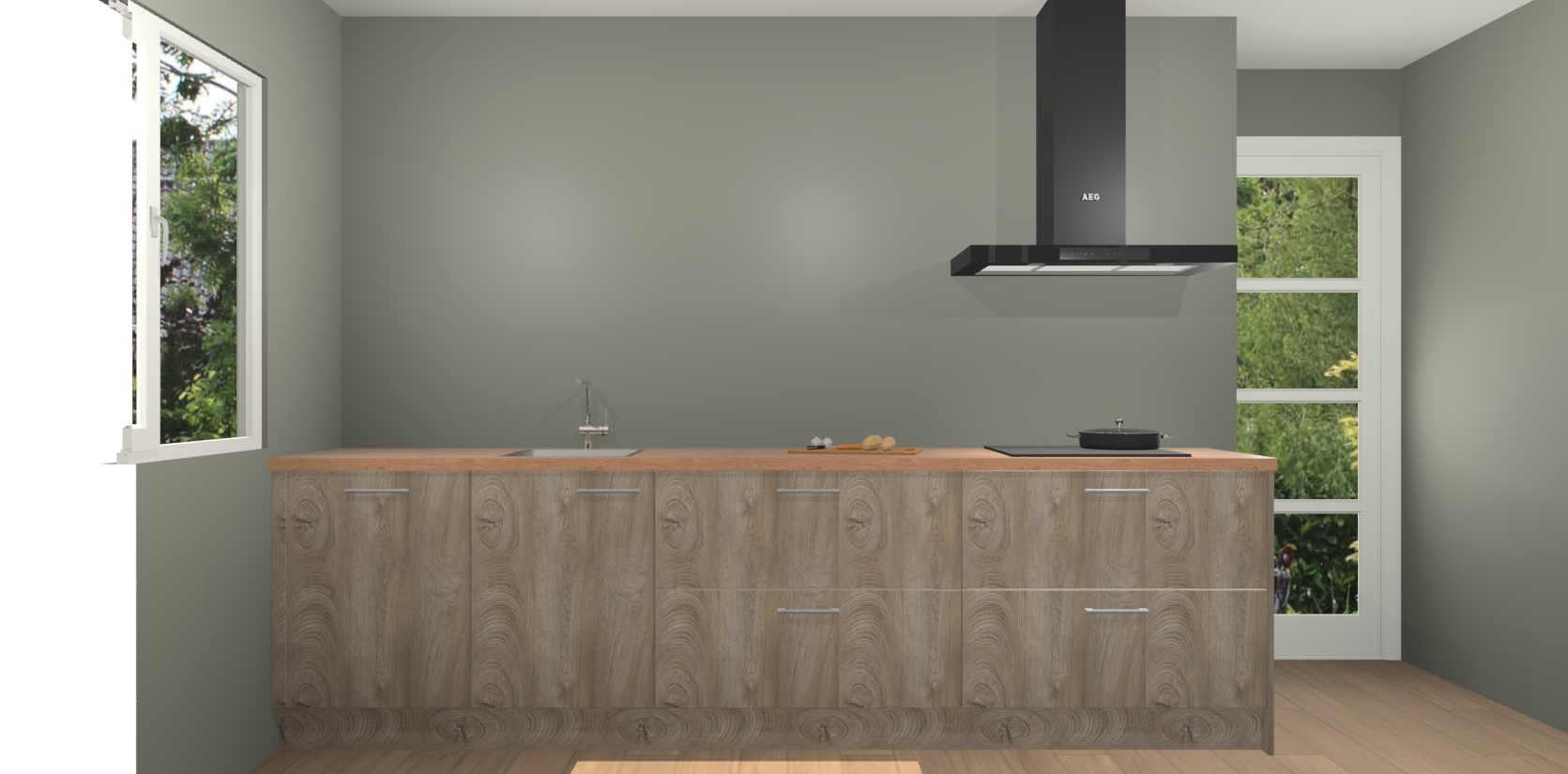 De softclose deuren openen en sluiten is ook heel eenvoudig - geniet van een moeiteloze keukenervaring, zelfs als er kinderen rondlopen. Voor extra gemak bij het plaatsen van uw bestelling bieden we ook een upgrade naar een kookplaat met geïntegreerde afzuiging.