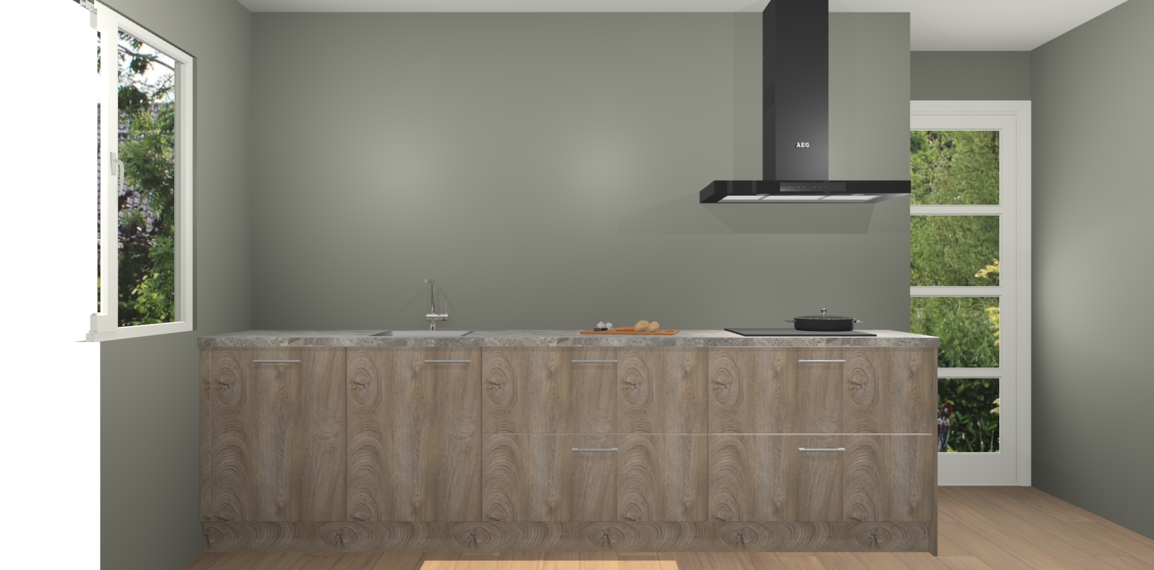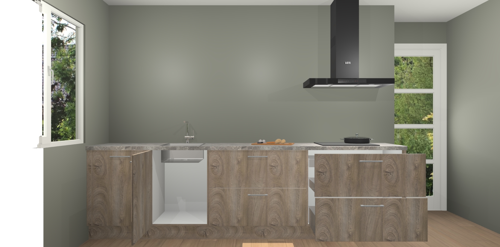 De softclose deuren openen en sluiten is ook heel eenvoudig - geniet van een moeiteloze keukenervaring, zelfs als er kinderen rondlopen. Voor extra gemak bij het plaatsen van uw bestelling bieden we ook een upgrade naar een kookplaat met geïntegreerde afzuiging.