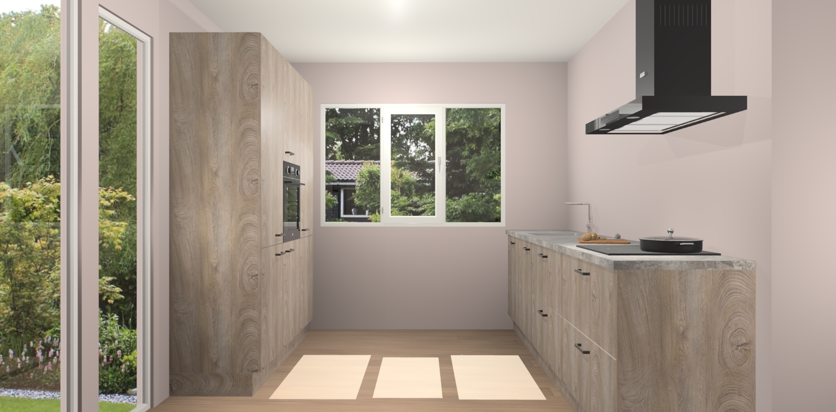 De softclose deuren openen en sluiten is ook heel eenvoudig - geniet van een moeiteloze keukenervaring, zelfs als er kinderen rondlopen. Voor extra gemak bij het plaatsen van uw bestelling bieden we ook een upgrade naar een kookplaat met geïntegreerde afzuiging.