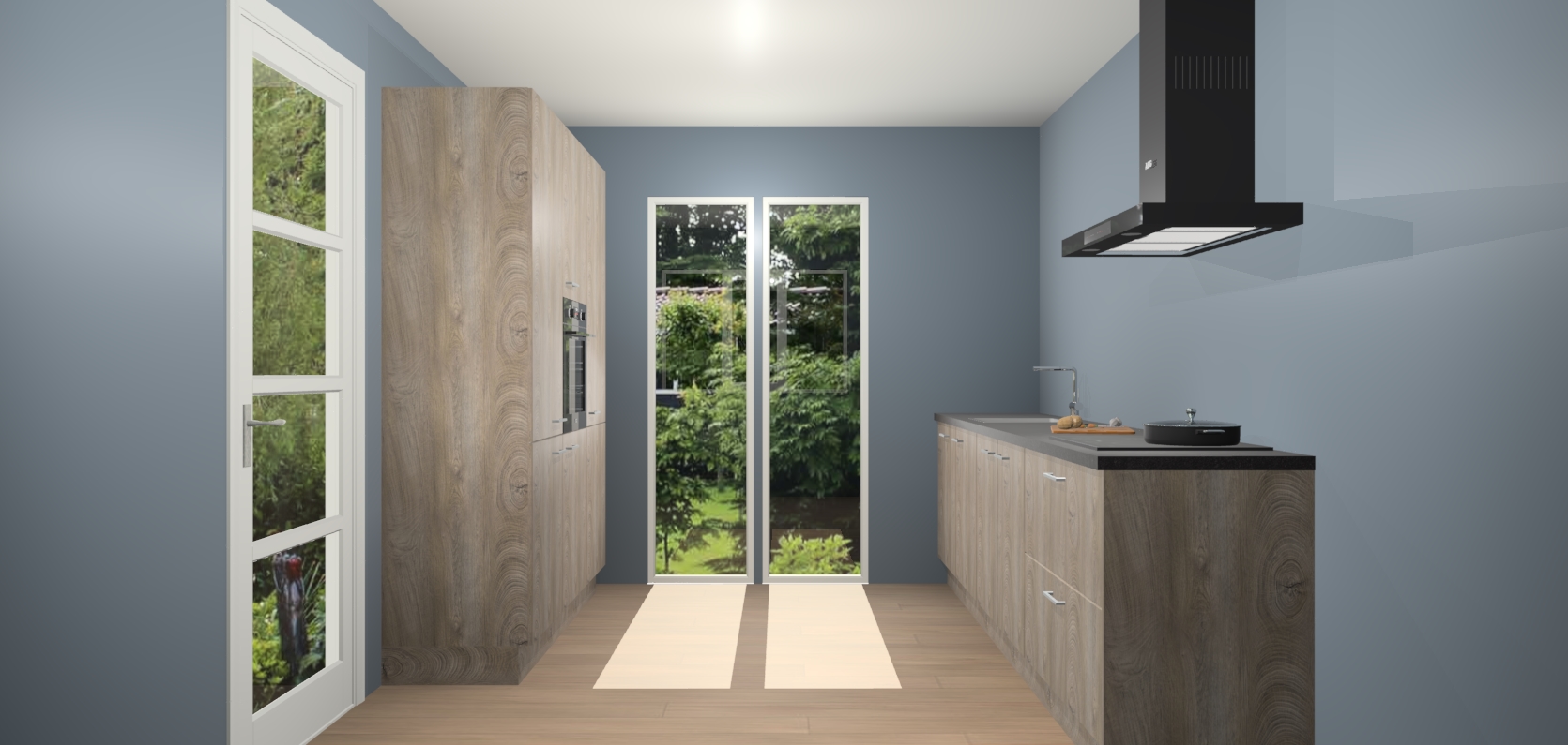 De softclose deuren openen en sluiten is ook heel eenvoudig - geniet van een moeiteloze keukenervaring, zelfs als er kinderen rondlopen. Voor extra gemak bij het plaatsen van uw bestelling bieden we ook een upgrade naar een kookplaat met geïntegreerde afzuiging.