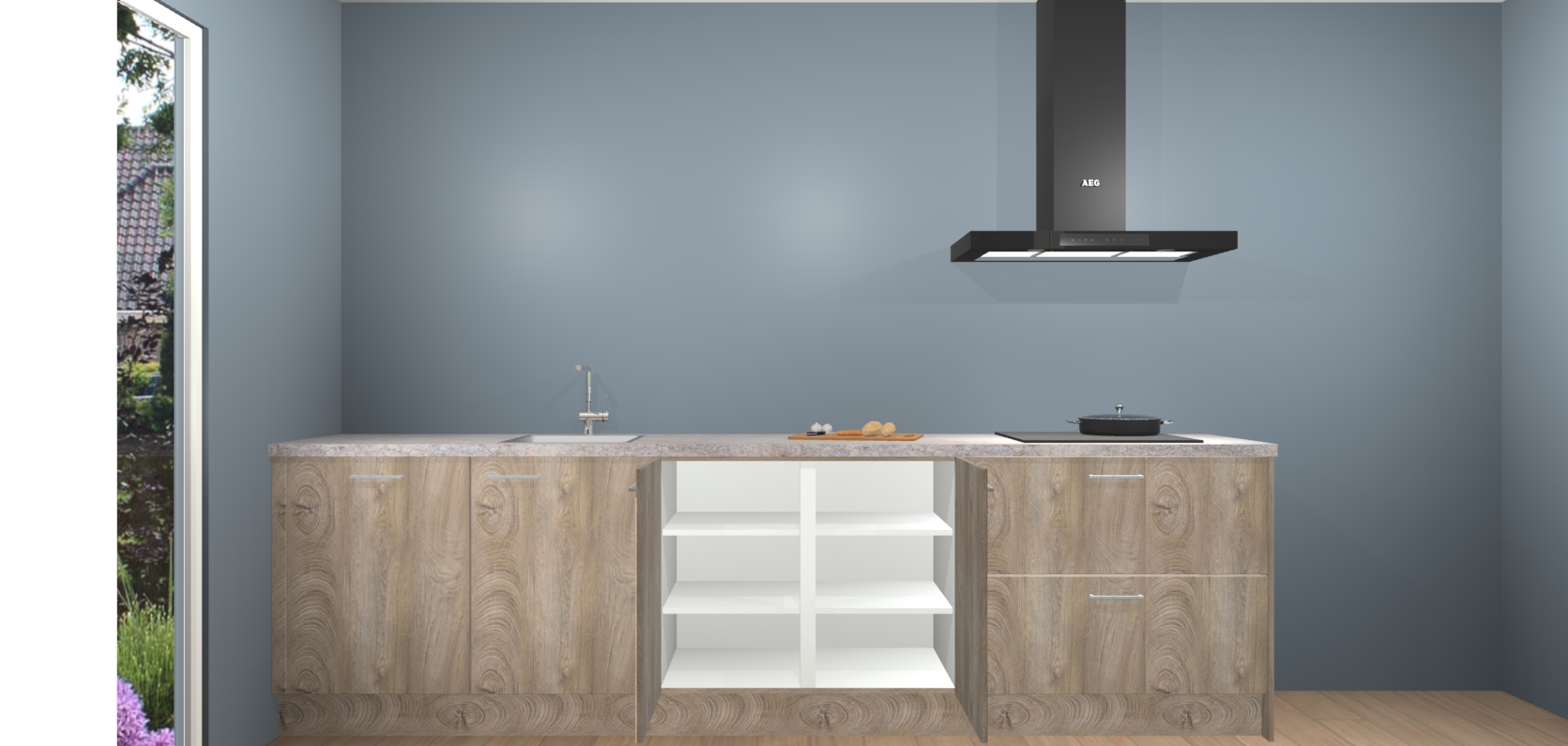 De softclose deuren openen en sluiten is ook heel eenvoudig - geniet van een moeiteloze keukenervaring, zelfs als er kinderen rondlopen. Voor extra gemak bij het plaatsen van uw bestelling bieden we ook een upgrade naar een kookplaat met geïntegreerde afzuiging.