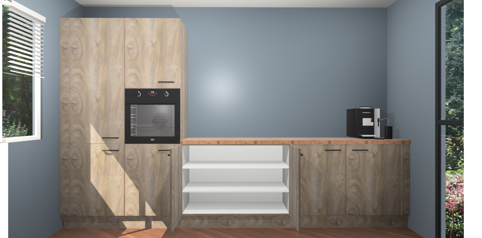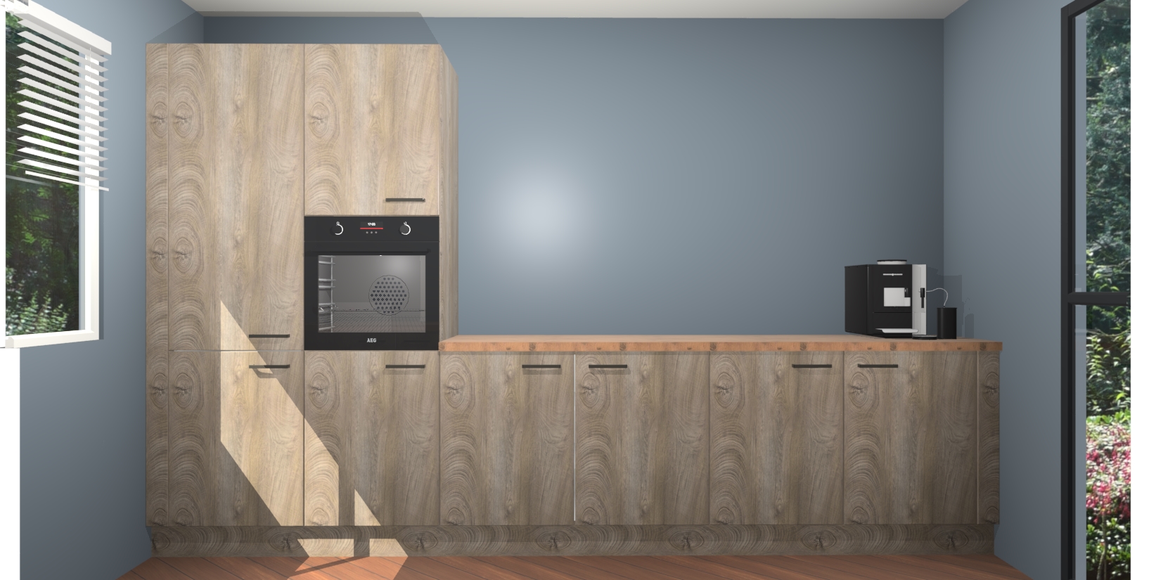 Welkom bij de Cantaro Eiken keuken Lusaka. Deze prachtige keuken zal de komende jaren het middelpunt van de belangstelling in uw huis zijn. Uitgerust met vijf inbouwapparaten komt u nooit kookgereedschap tekort. Bovendien geeft de warme houtlook elke ruimte een uitnodigende en tijdloze uitstraling.