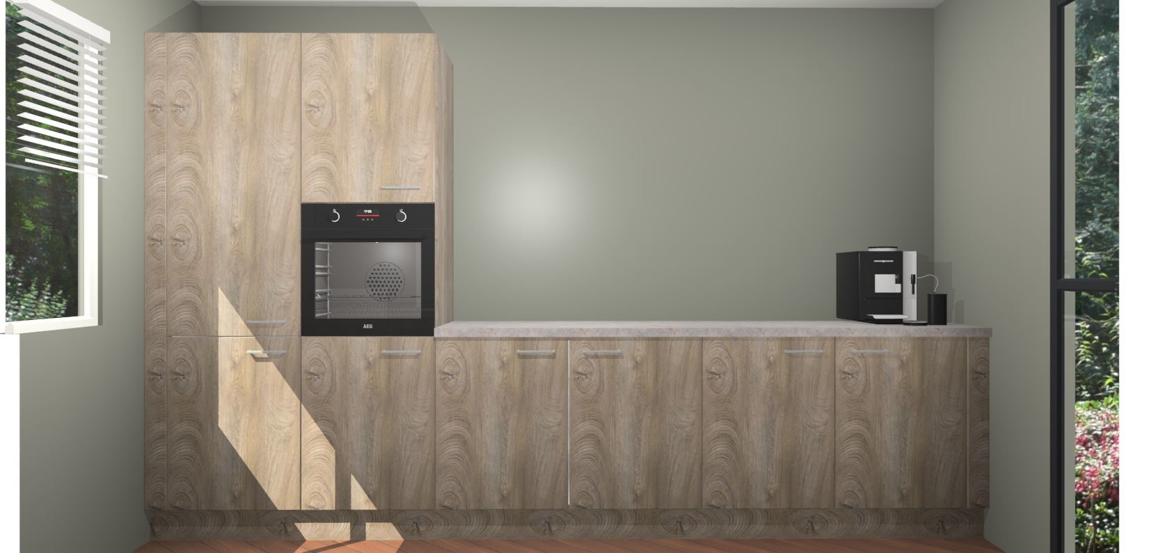 Welkom bij de Cantaro Eiken keuken Lusaka. Deze prachtige keuken zal de komende jaren het middelpunt van de belangstelling in uw huis zijn. Uitgerust met vijf inbouwapparaten komt u nooit kookgereedschap tekort. Bovendien geeft de warme houtlook elke ruimte een uitnodigende en tijdloze uitstraling.