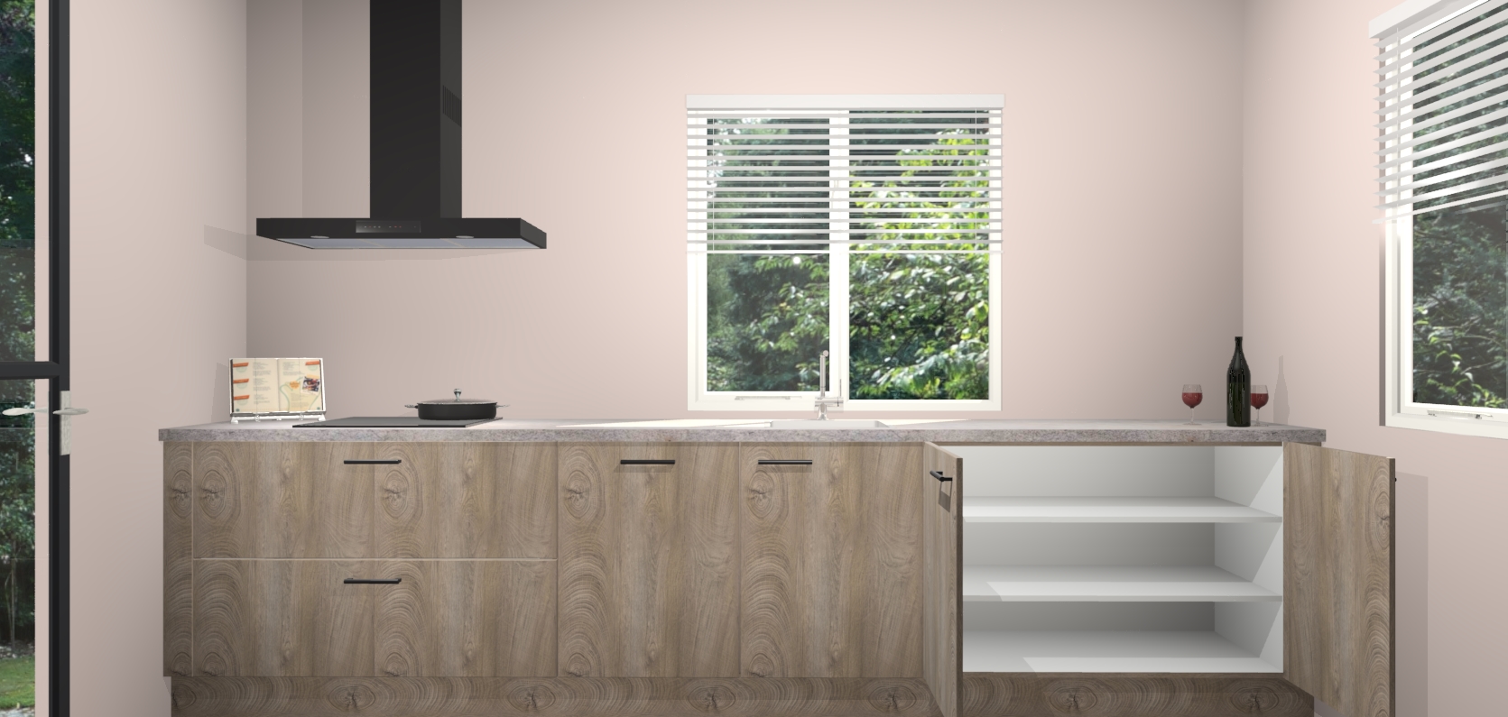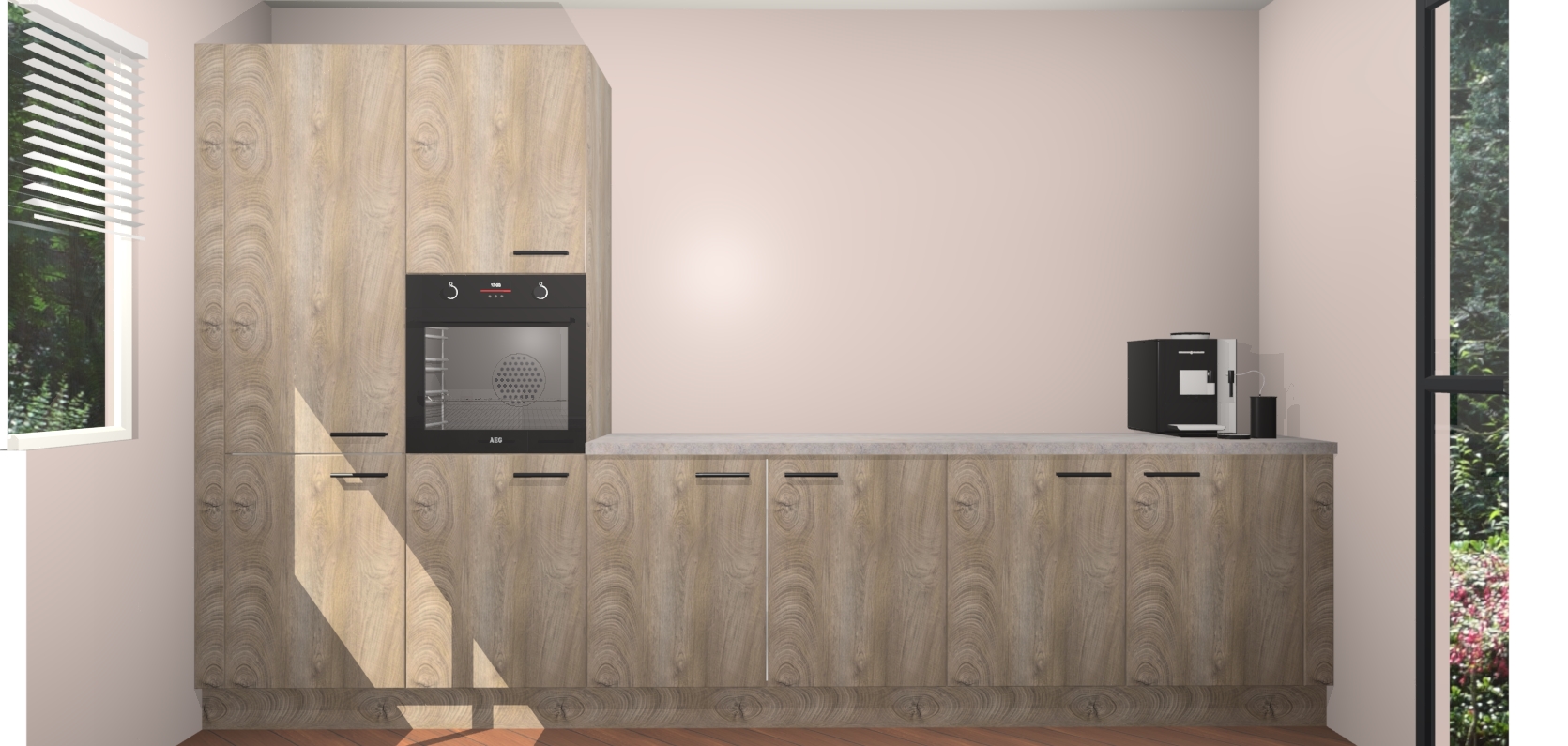 Welkom bij de Cantaro Eiken keuken Lusaka. Deze prachtige keuken zal de komende jaren het middelpunt van de belangstelling in uw huis zijn. Uitgerust met vijf inbouwapparaten komt u nooit kookgereedschap tekort. Bovendien geeft de warme houtlook elke ruimte een uitnodigende en tijdloze uitstraling.