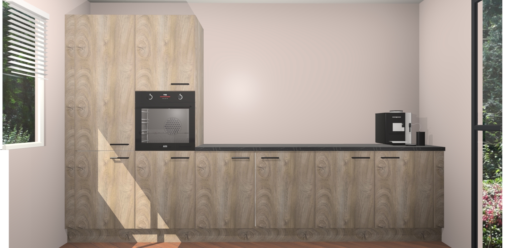 Welkom bij de Cantaro Eiken keuken Lusaka. Deze prachtige keuken zal de komende jaren het middelpunt van de belangstelling in uw huis zijn. Uitgerust met vijf inbouwapparaten komt u nooit kookgereedschap tekort. Bovendien geeft de warme houtlook elke ruimte een uitnodigende en tijdloze uitstraling.