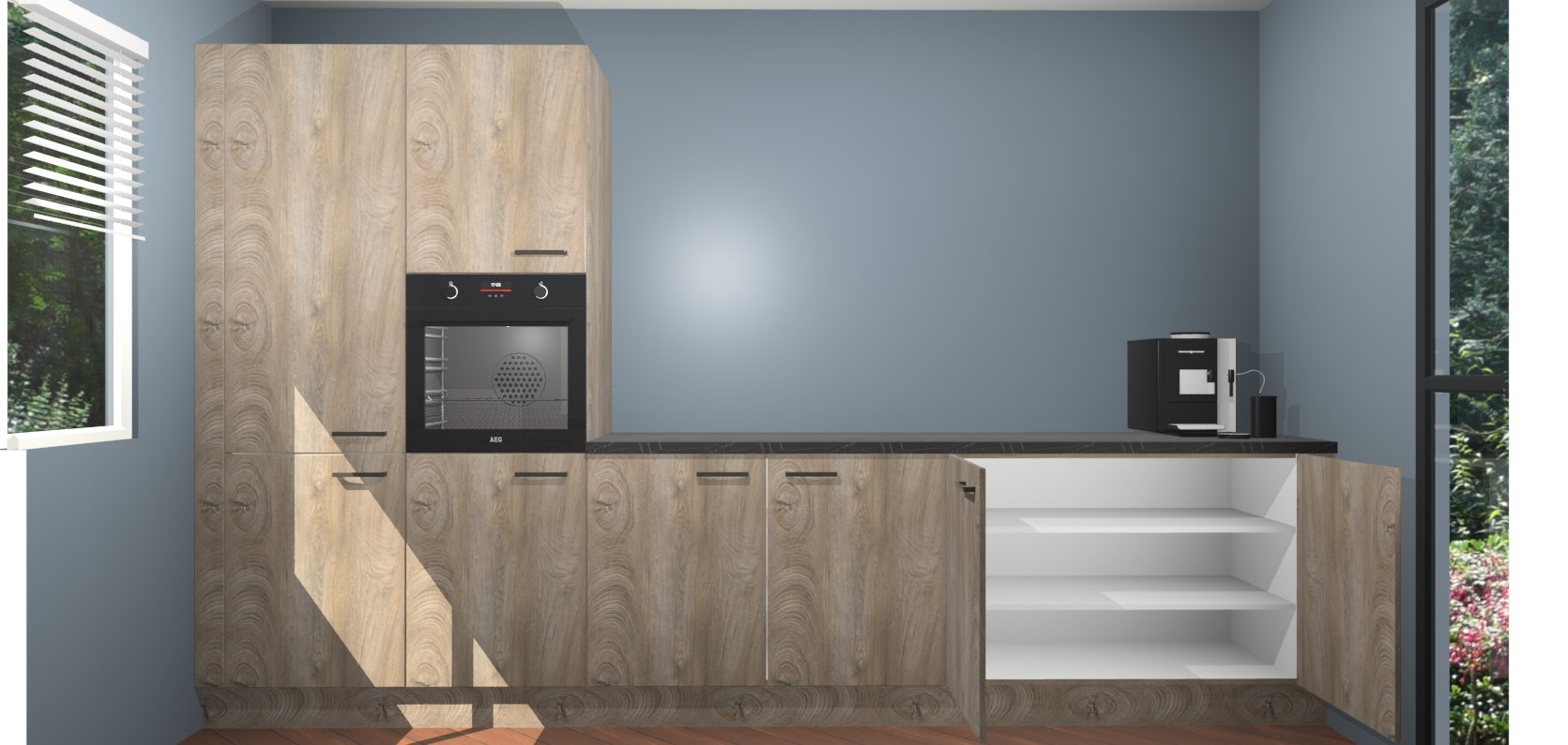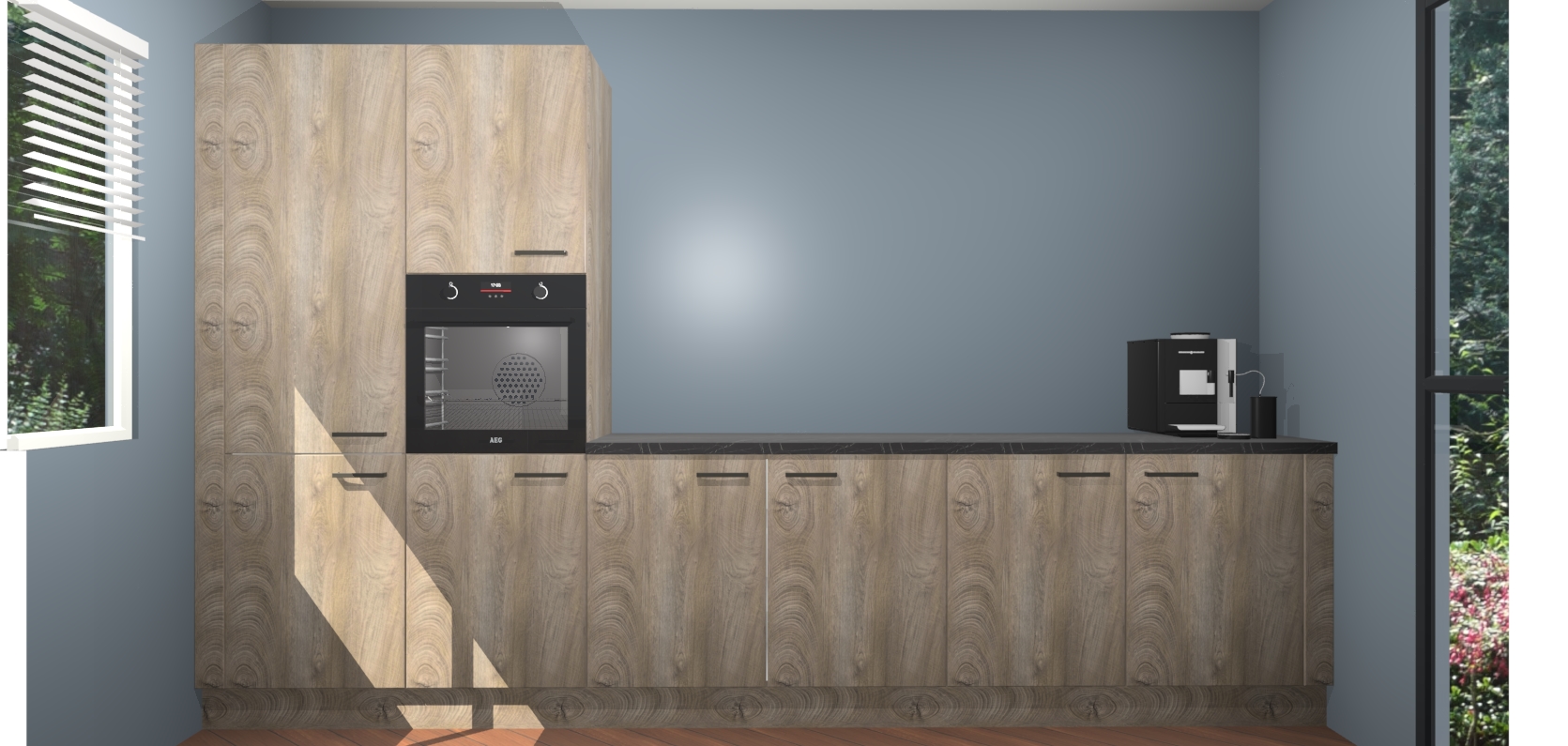 Welkom bij de Cantaro Eiken keuken Lusaka. Deze prachtige keuken zal de komende jaren het middelpunt van de belangstelling in uw huis zijn. Uitgerust met vijf inbouwapparaten komt u nooit kookgereedschap tekort. Bovendien geeft de warme houtlook elke ruimte een uitnodigende en tijdloze uitstraling.